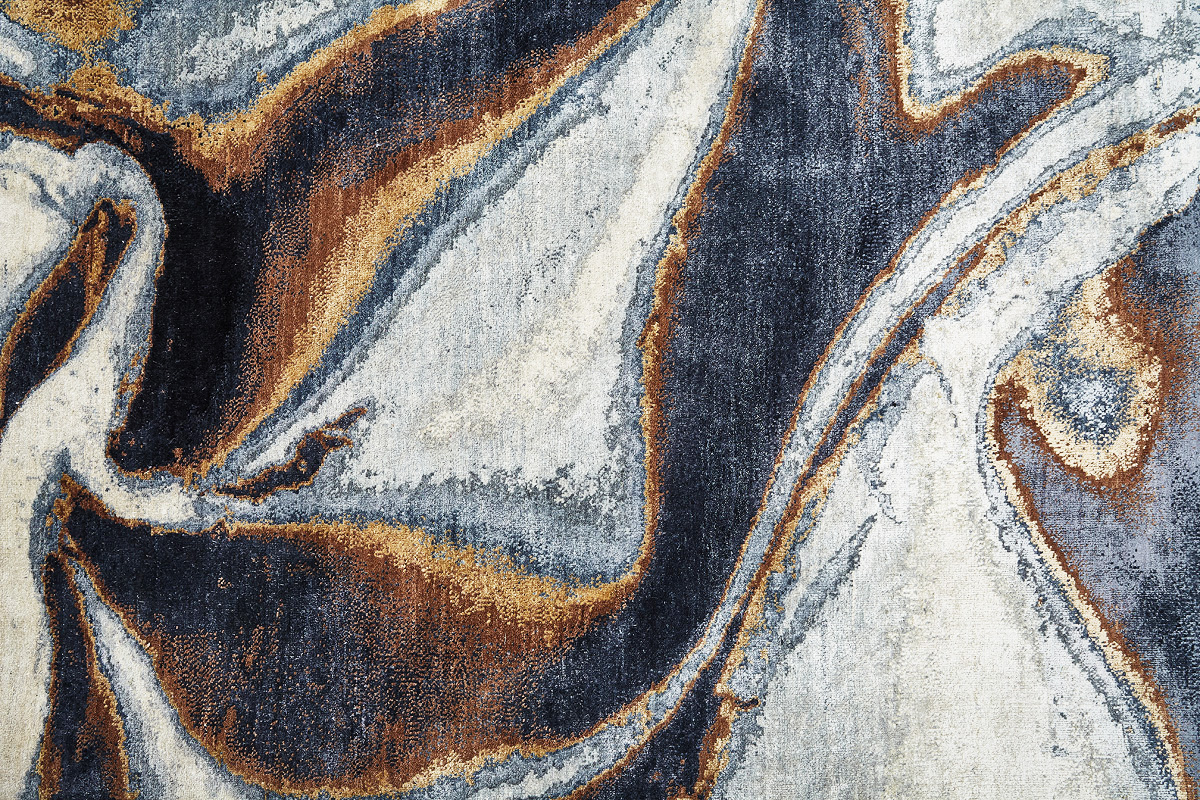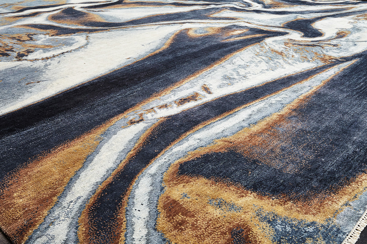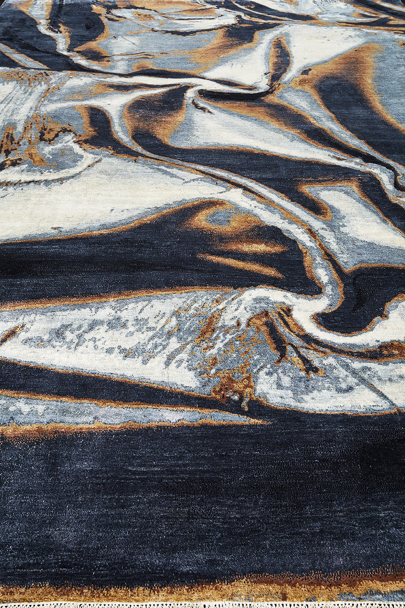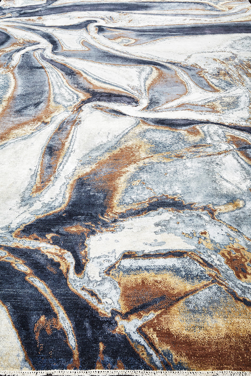 Дизайн ковров напоминает современные полотна художников-абстракционистов и производит столь же яркое и незабываемое впечатление в интерьере. Живописный эффект и необычная фактура зависят от выбора материала: натуральной шерсти, шёлка и от их сочетаний друг с другом. Ковры ткутся вручную в лучших мастерских Индии и Пакистана.