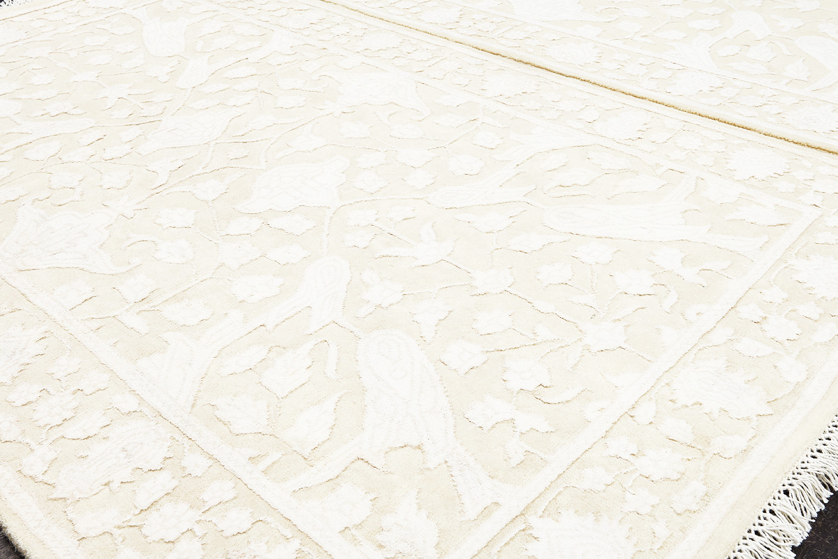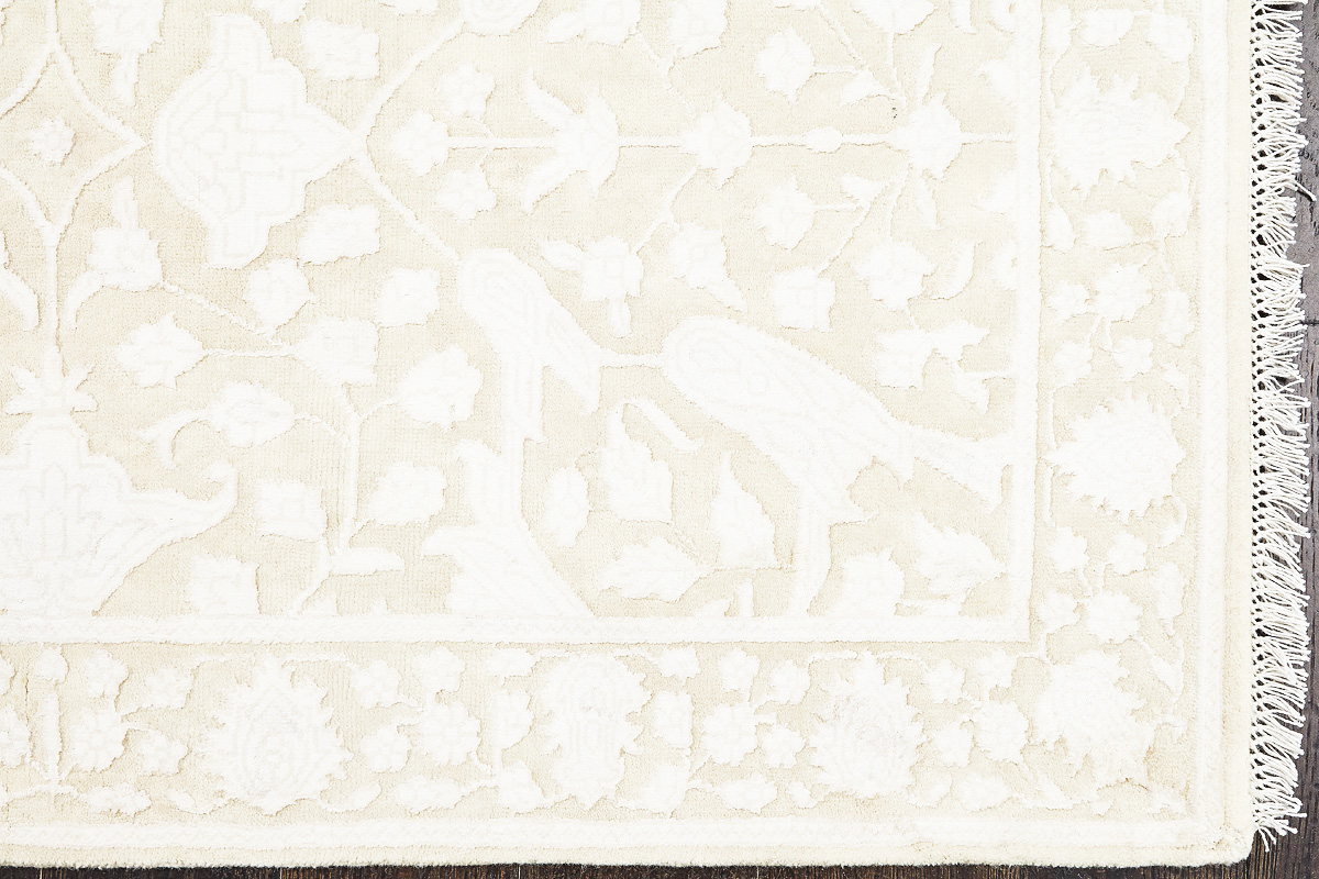 Каждый ковер в этой коллекции соткан вручную из шерсти и арт шёлка опытными индийскими мастерами.