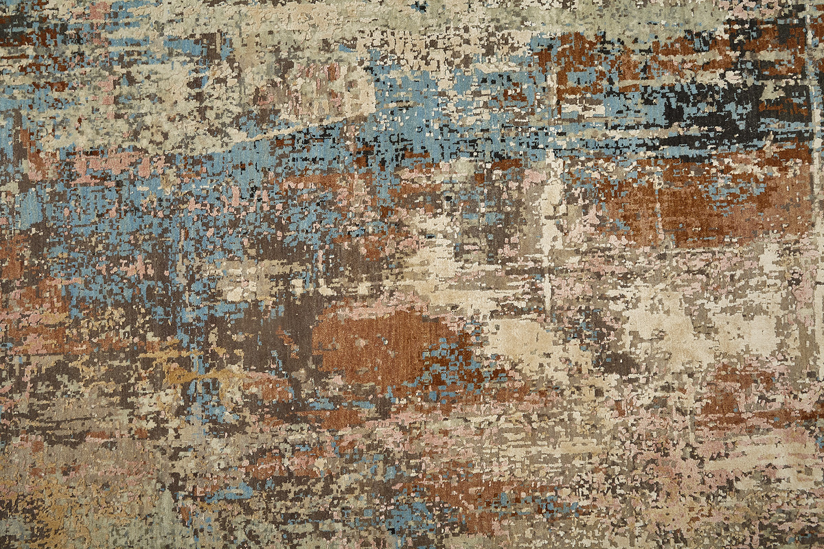 Дизайн ковров напоминает современные полотна художников-абстракционистов и производит столь же яркое и незабываемое впечатление в интерьере. Живописный эффект и необычная фактура зависят от выбора материала: натуральной шерсти, шёлка и от их сочетаний друг с другом. Ковры ткутся вручную в лучших мастерских Индии и Пакистана.