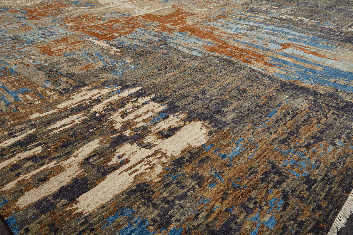 Дизайн ковров напоминает современные полотна художников-абстракционистов и производит столь же яркое и незабываемое впечатление в интерьере. Живописный эффект и необычная фактура зависят от выбора материала: натуральной шерсти, шёлка и от их сочетаний друг с другом. Ковры ткутся вручную в лучших мастерских Индии и Пакистана.