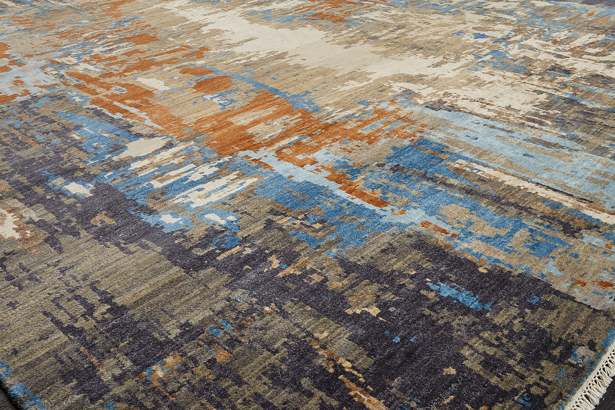 Дизайн ковров напоминает современные полотна художников-абстракционистов и производит столь же яркое и незабываемое впечатление в интерьере. Живописный эффект и необычная фактура зависят от выбора материала: натуральной шерсти, шёлка и от их сочетаний друг с другом. Ковры ткутся вручную в лучших мастерских Индии и Пакистана.