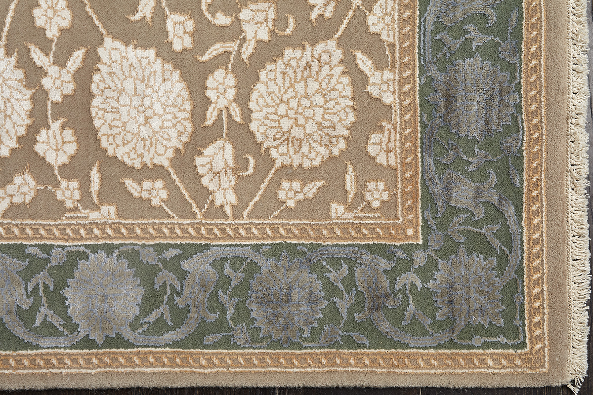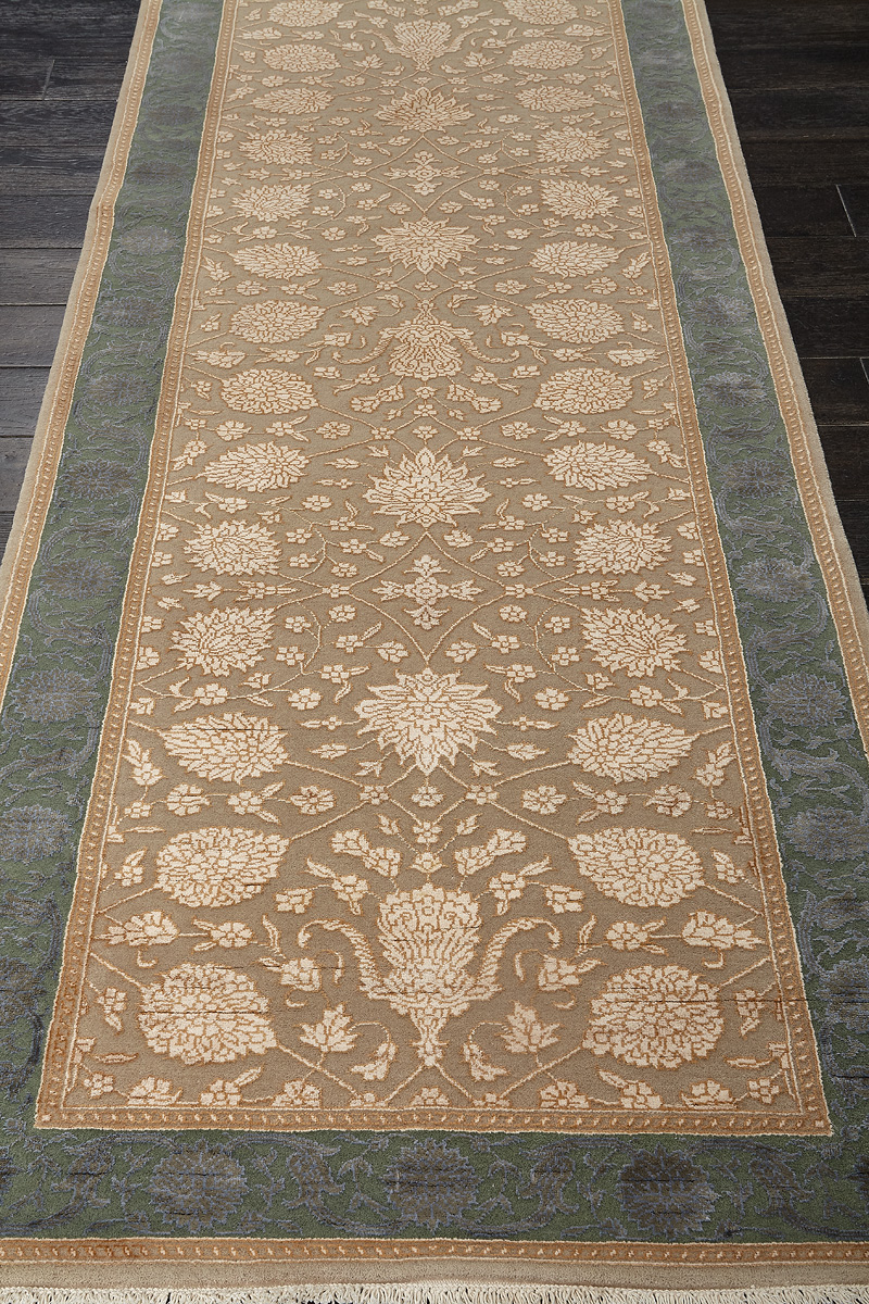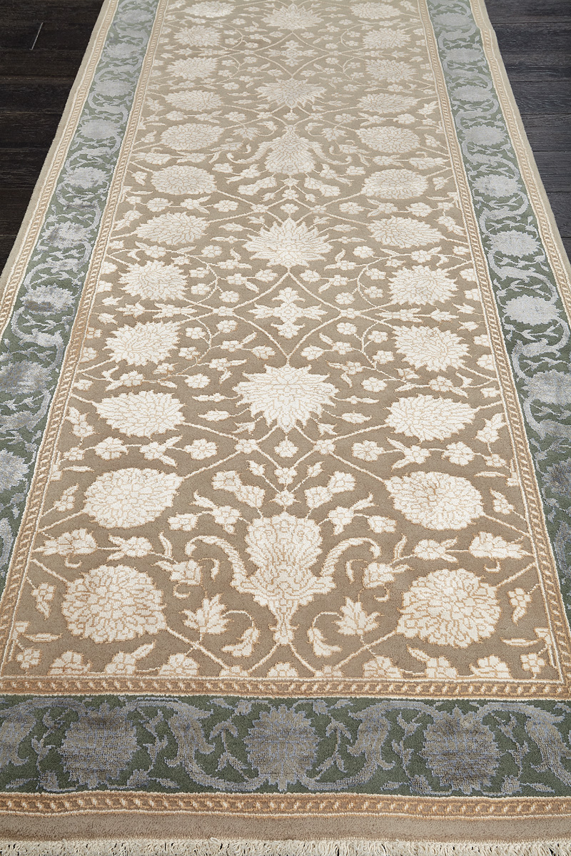 Каждый ковер в этой коллекции соткан вручную из шерсти и арт шёлка опытными индийскими мастерами.