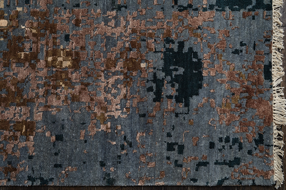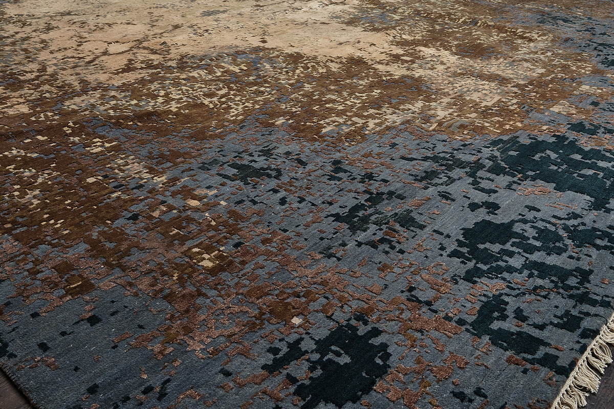 Дизайн ковров напоминает современные полотна художников-абстракционистов и производит столь же яркое и незабываемое впечатление в интерьере. Живописный эффект и необычная фактура зависят от выбора материала: натуральной шерсти, шёлка и от их сочетаний друг с другом. Ковры ткутся вручную в лучших мастерских Индии и Пакистана.