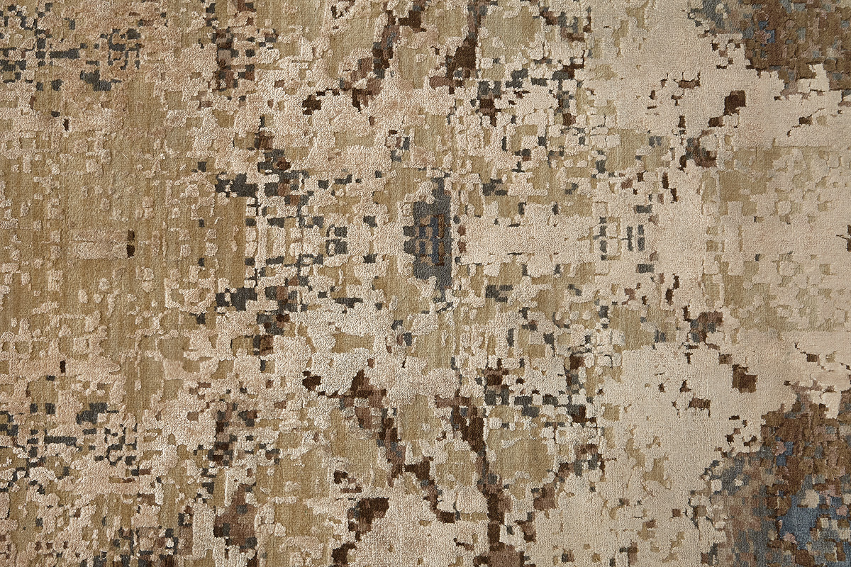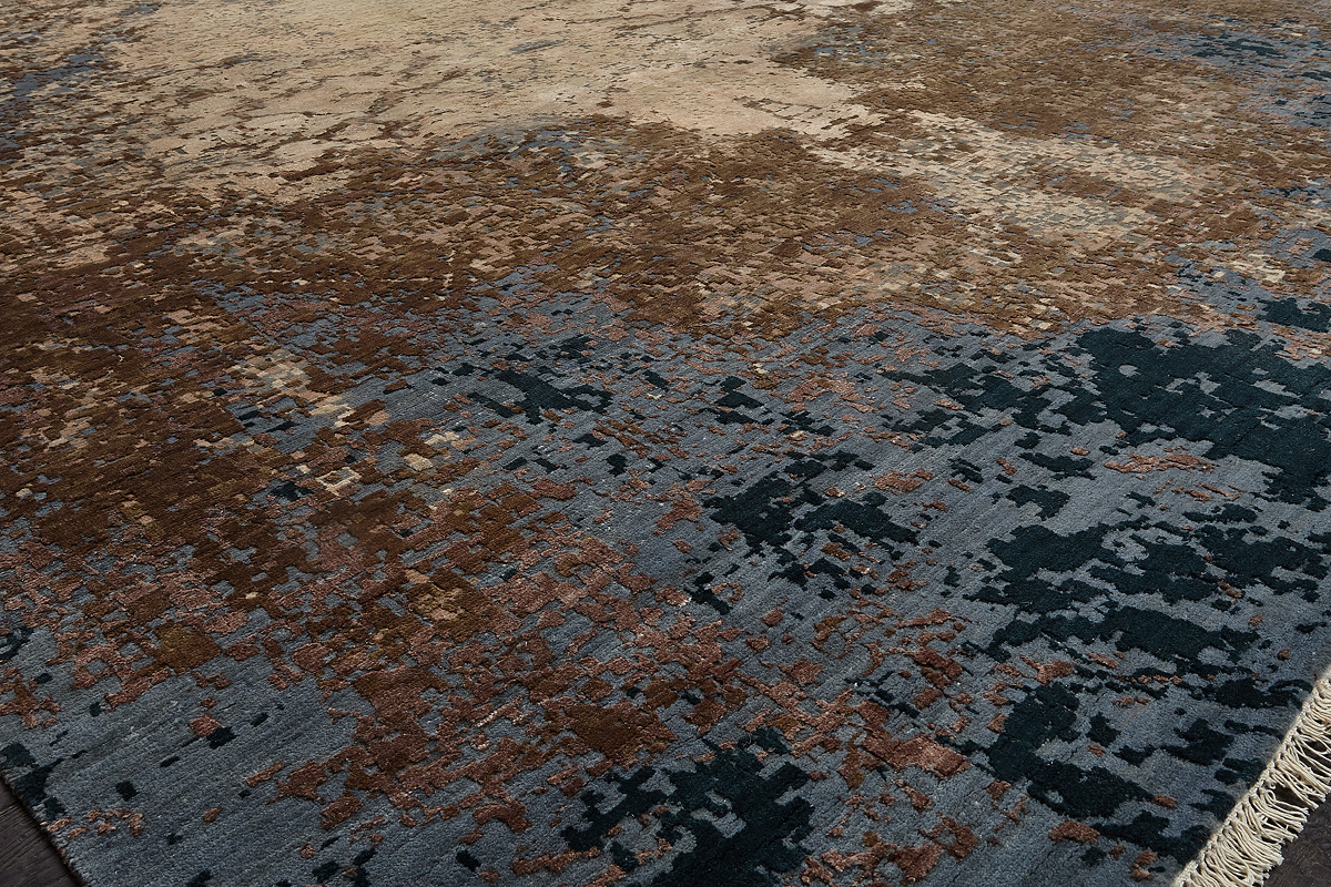 Дизайн ковров напоминает современные полотна художников-абстракционистов и производит столь же яркое и незабываемое впечатление в интерьере. Живописный эффект и необычная фактура зависят от выбора материала: натуральной шерсти, шёлка и от их сочетаний друг с другом. Ковры ткутся вручную в лучших мастерских Индии и Пакистана.