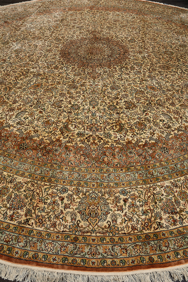 Ковры из коллекции Кашмир ткутся по традиционной технологии из нежнейшего кашмирского шелка. Лучшие произведения индийских мастеров отличает высокая узелковая плотность, прочность и яркость цветов.