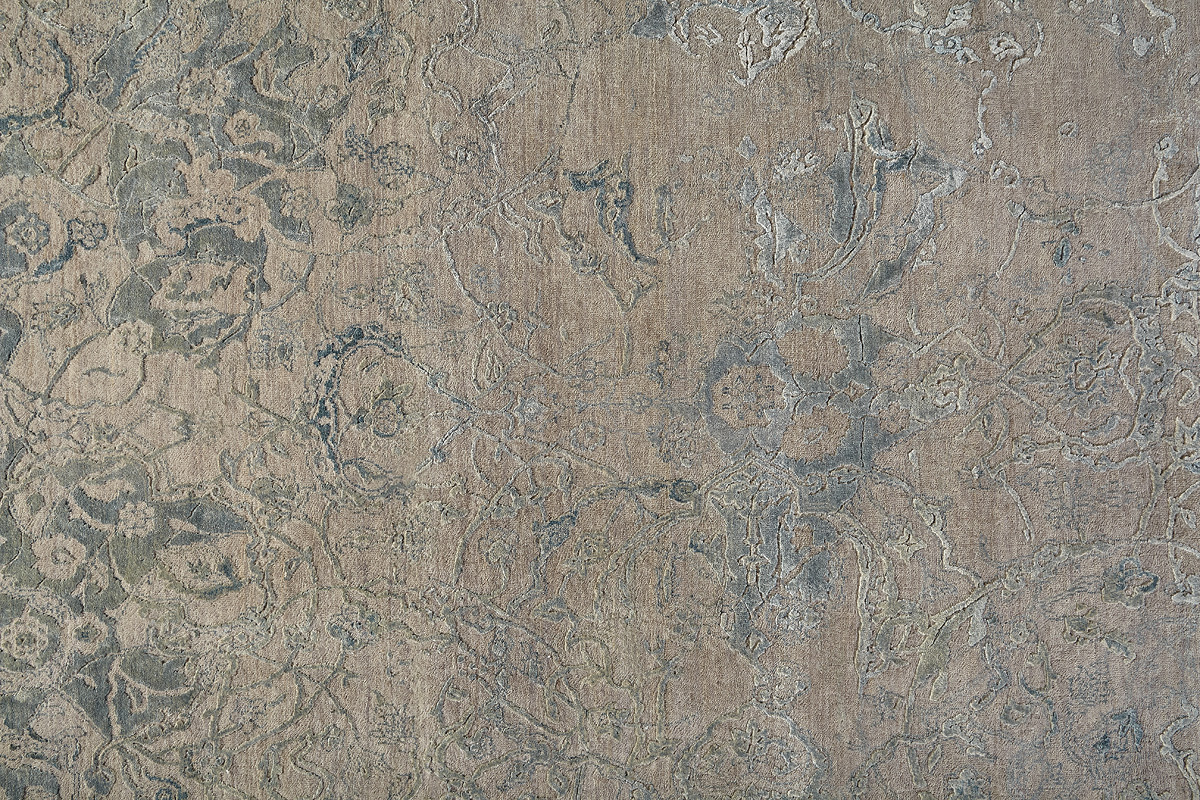 Время и природа — два главных стержня. Впечатление такое, что краски словно стёрлись, а если они и сохраняют яркость, то рисунок сохранился не весь, какие‑то фрагменты утрачены — такова типология этого столь актуального сегодня ковра ручной работы из коллекции illusion.
