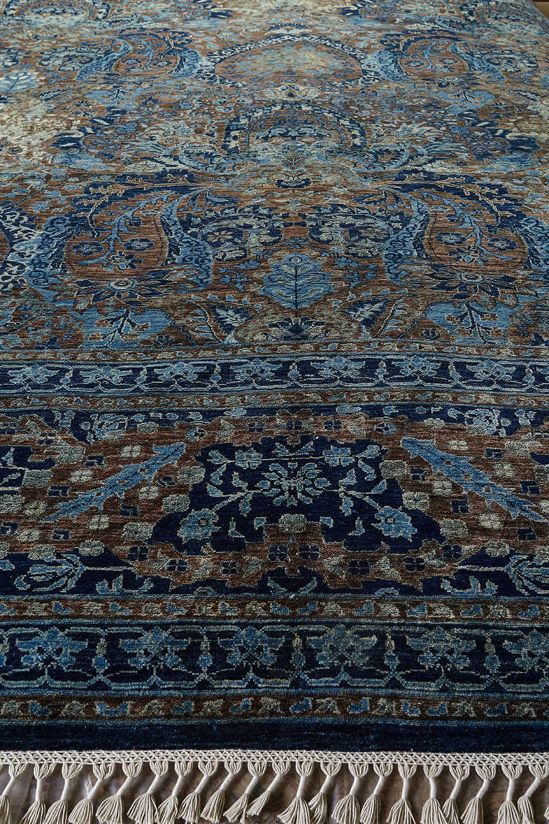 Родина этих ковров Индия и Пакистан. Чтобы создать такое произведение искусства у мастеров уходит от одного года до двух лет. Плотность ковров, в зависимости от размера, составляет от 150 000 до 400 000 узлов на квадратный метр.