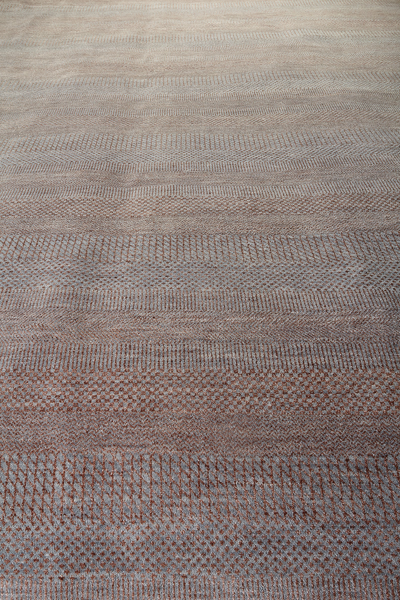 Дизайн ковров напоминает современные полотна художников-абстракционистов и производит столь же яркое и незабываемое впечатление в интерьере. Живописный эффект и необычная фактура зависят от выбора материала: натуральной шерсти, шёлка и от их сочетаний друг с другом. Ковры ткутся вручную в лучших мастерских Индии и Пакистана.