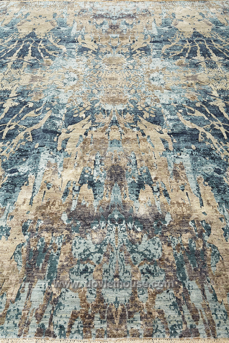Дизайн ковров напоминает современные полотна художников-абстракционистов и производит столь же яркое и незабываемое впечатление в интерьере. Живописный эффект и необычная фактура зависят от выбора материала: натуральной шерсти, шёлка и от их сочетаний друг с другом. Ковры ткутся вручную в лучших мастерских Индии и Пакистана.