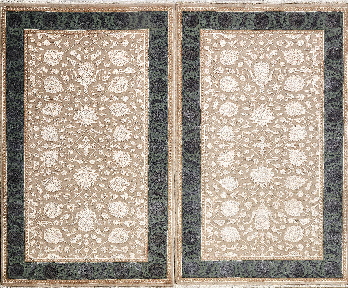 Более пяти веков назад в городе Агра зародилась знаменитая индийская школа ковроткачества, прославившаяся не меньше, чем расположенный здесь же Тадж-Махал. Мощное персидское влияние, помноженное на местный колорит, привело к появлению оригинальных орнаментов с богатыми растительными узорами — причудливым цветам, ветвям и листьям, разбросанным по всему полю ковра.
