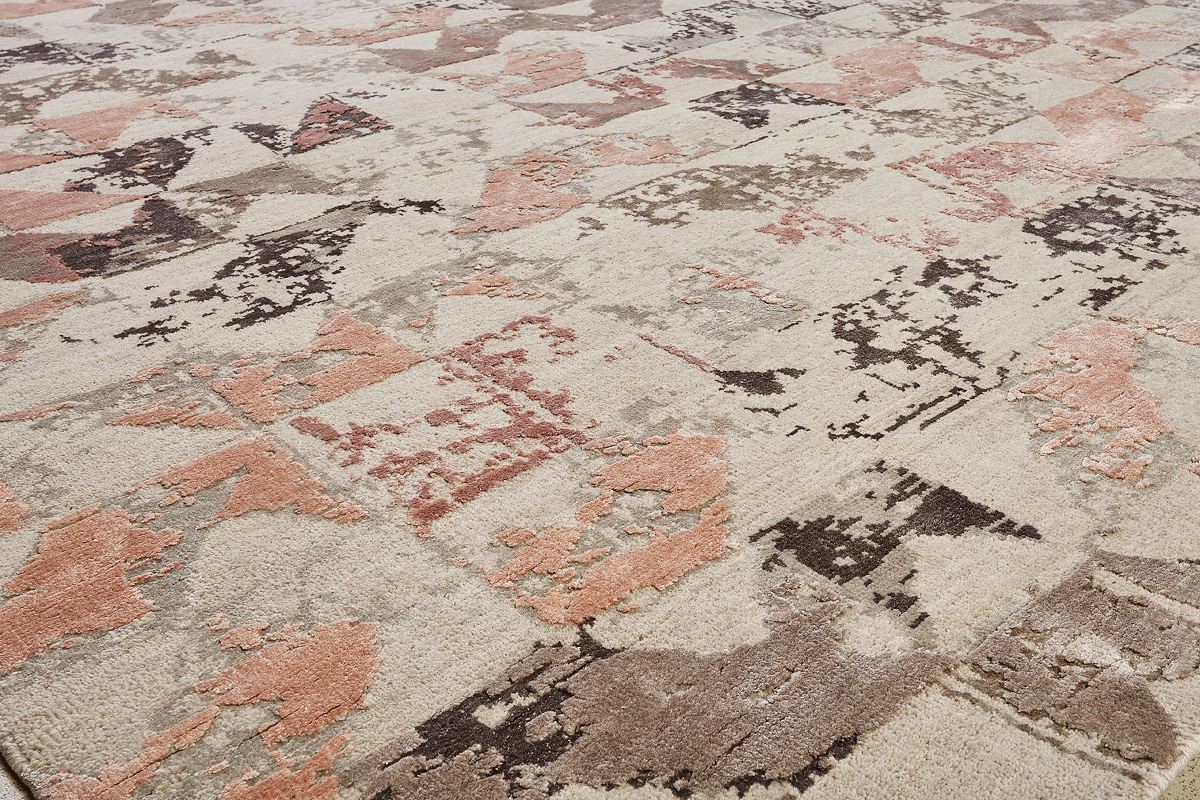 Дизайн ковров напоминает современные полотна художников-абстракционистов и производит столь же яркое и незабываемое впечатление в интерьере. Живописный эффект и необычная фактура зависят от выбора материала: натуральной шерсти, шёлка и от их сочетаний друг с другом. Ковры ткутся вручную в лучших мастерских Индии и Пакистана.
