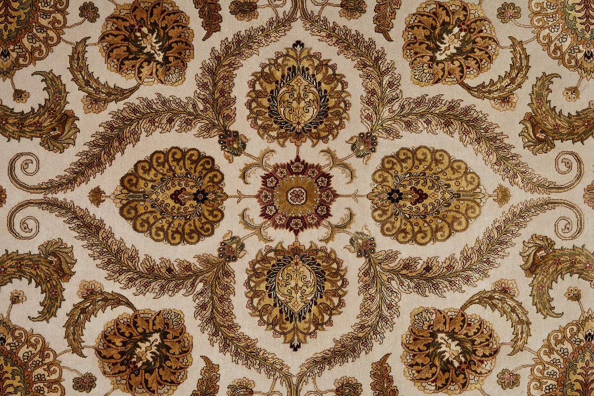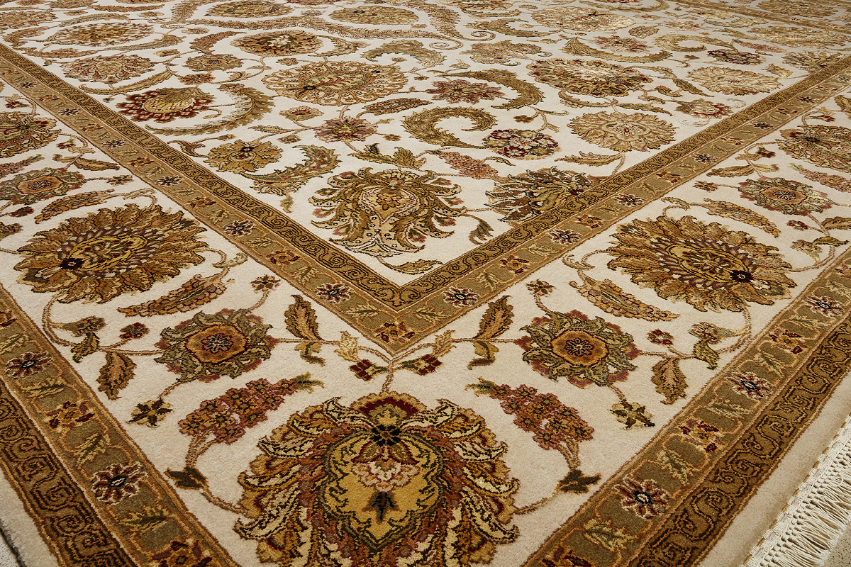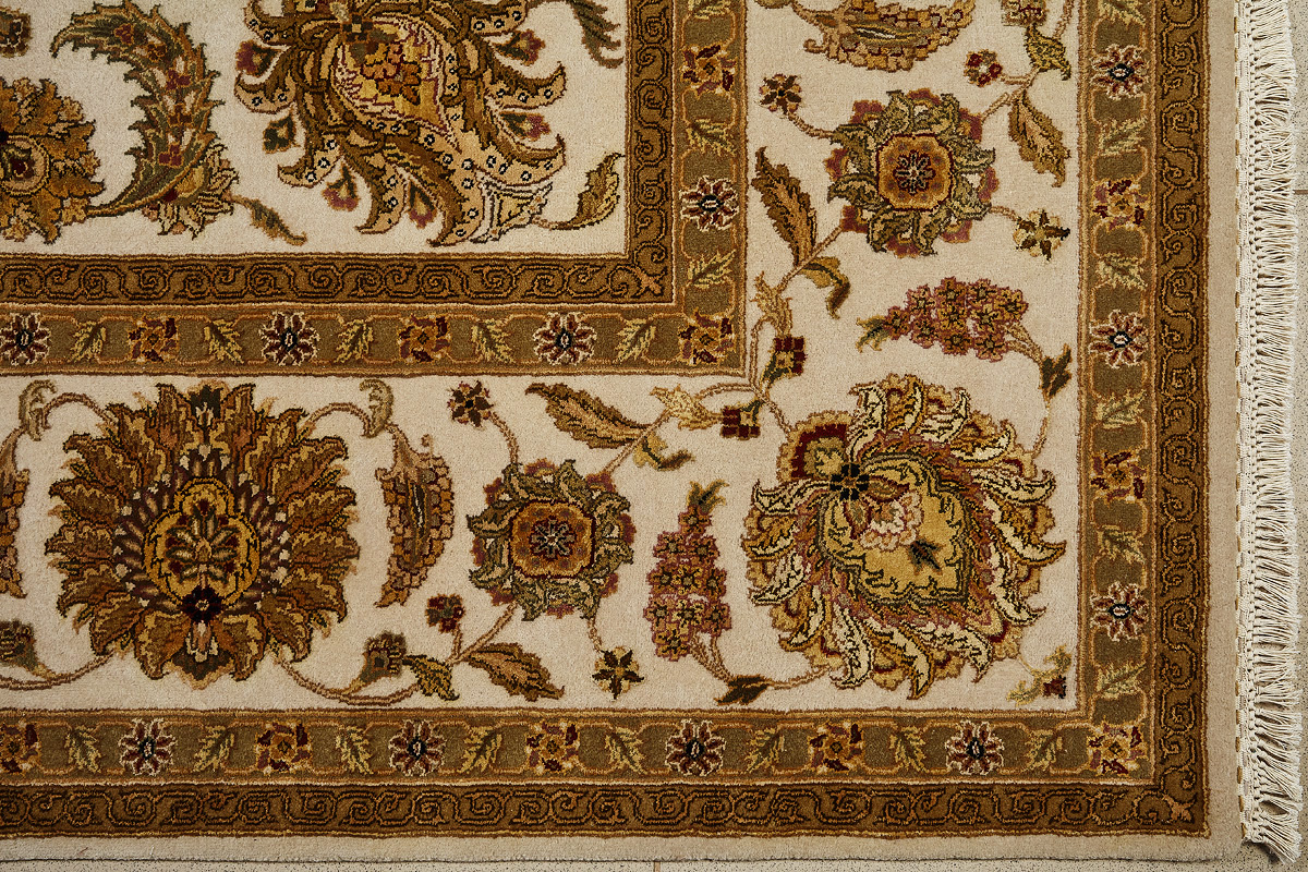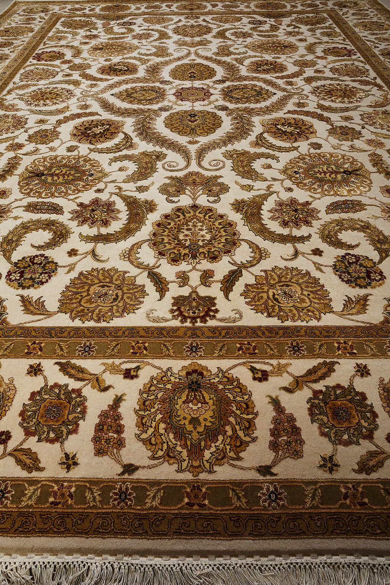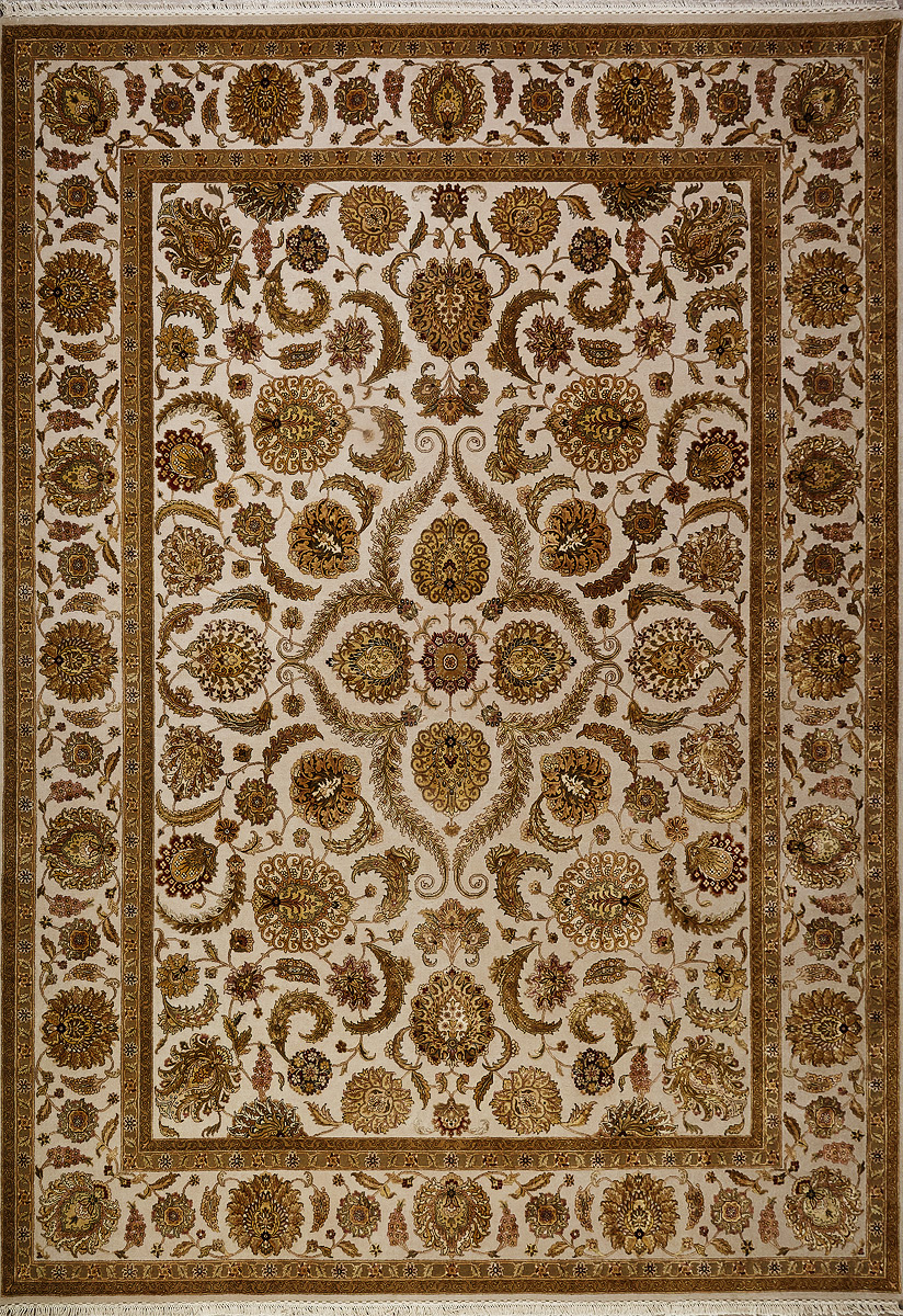 Более пяти веков назад в городе Агра зародилась знаменитая индийская школа ковроткачества, прославившаяся не меньше, чем расположенный здесь же Тадж-Махал. Мощное персидское влияние, помноженное на местный колорит, привело к появлению оригинальных орнаментов с богатыми растительными узорами — причудливым цветам, ветвям и листьям, разбросанным по всему полю ковра.