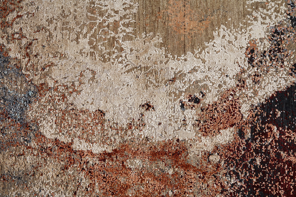 Дизайн ковров напоминает современные полотна художников-абстракционистов и производит столь же яркое и незабываемое впечатление в интерьере. Живописный эффект и необычная фактура зависят от выбора материала: натуральной шерсти, шёлка и от их сочетаний друг с другом. Ковры ткутся вручную в лучших мастерских Индии и Пакистана.