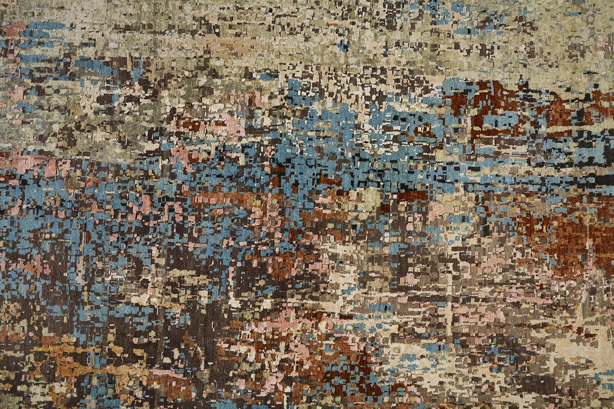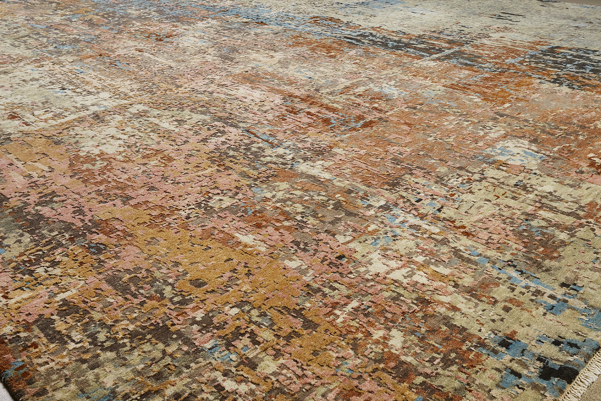 Дизайн ковров напоминает современные полотна художников-абстракционистов и производит столь же яркое и незабываемое впечатление в интерьере. Живописный эффект и необычная фактура зависят от выбора материала: натуральной шерсти, шёлка и от их сочетаний друг с другом. Ковры ткутся вручную в лучших мастерских Индии и Пакистана.