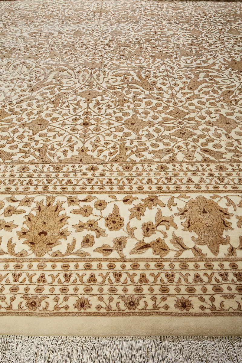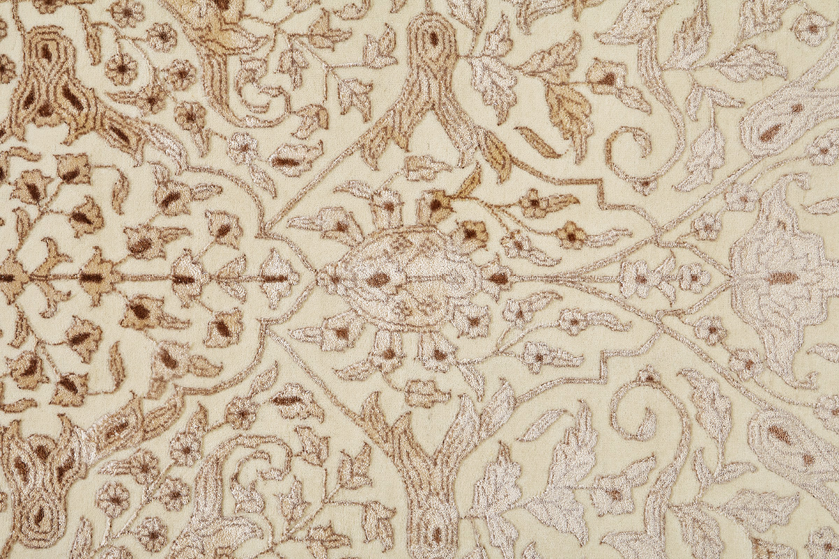 Каждый ковер в этой коллекции соткан вручную из шерсти и арт шёлка опытными индийскими мастерами.