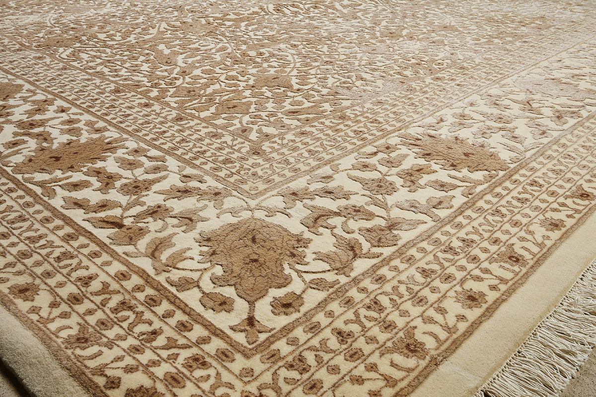 Более пяти веков назад в городе Агра зародилась знаменитая индийская школа ковроткачества, прославившаяся не меньше, чем расположенный здесь же Тадж-Махал. Мощное персидское влияние, помноженное на местный колорит, привело к появлению оригинальных орнаментов с богатыми растительными узорами — причудливым цветам, ветвям и листьям, разбросанным по всему полю ковра.
