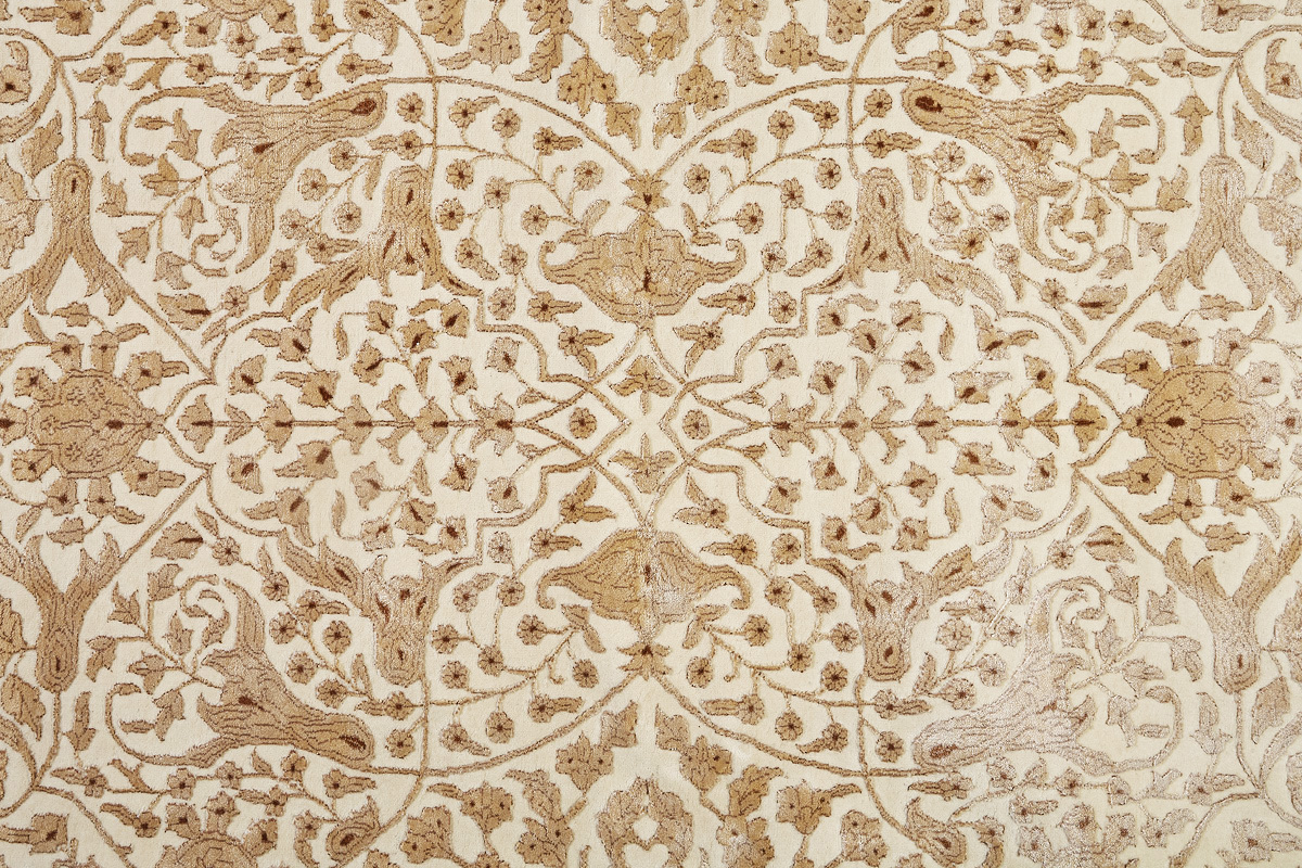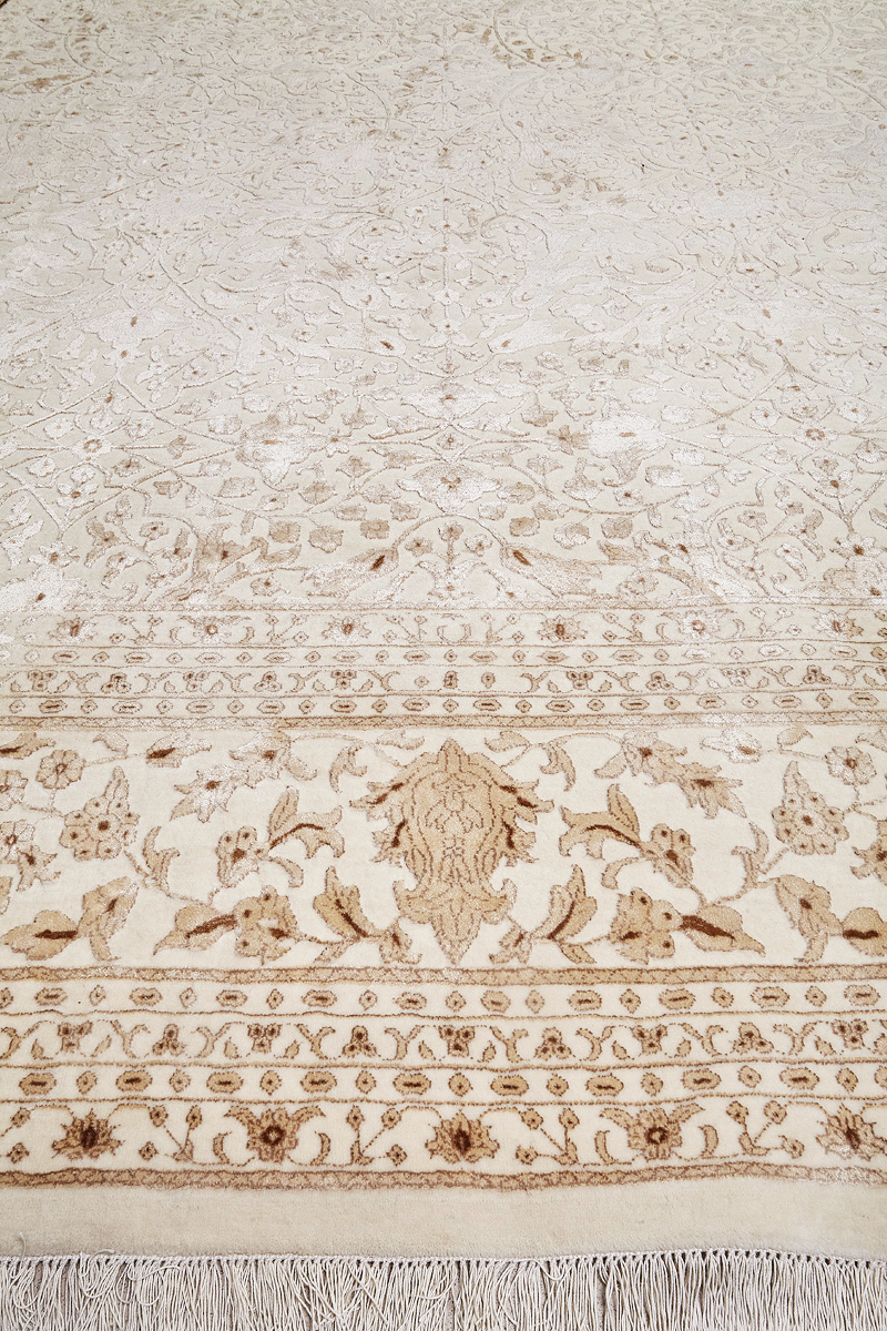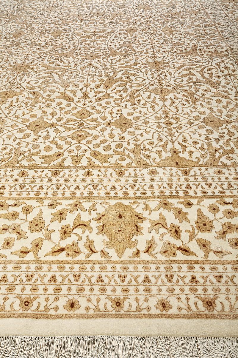 Каждый ковер в этой коллекции соткан вручную из шерсти и арт шёлка опытными индийскими мастерами.