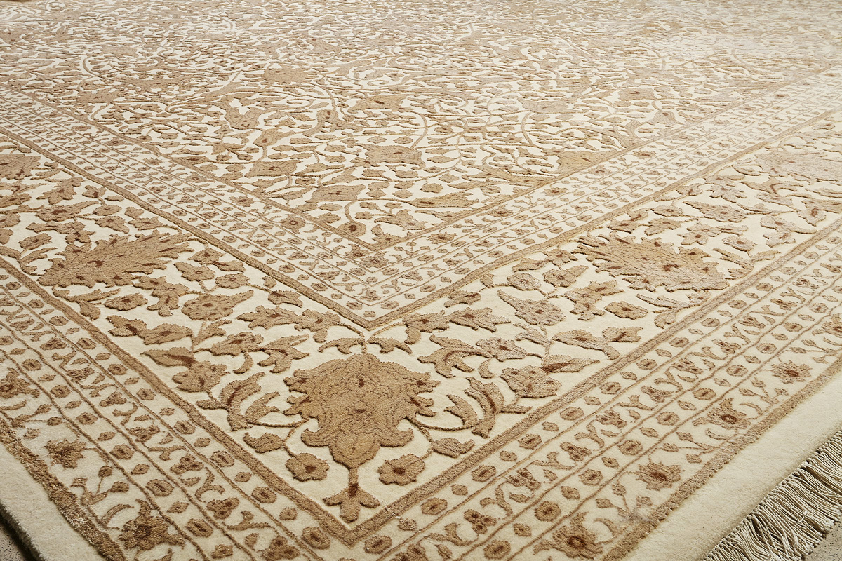 Более пяти веков назад в городе Агра зародилась знаменитая индийская школа ковроткачества, прославившаяся не меньше, чем расположенный здесь же Тадж-Махал. Мощное персидское влияние, помноженное на местный колорит, привело к появлению оригинальных орнаментов с богатыми растительными узорами — причудливым цветам, ветвям и листьям, разбросанным по всему полю ковра.