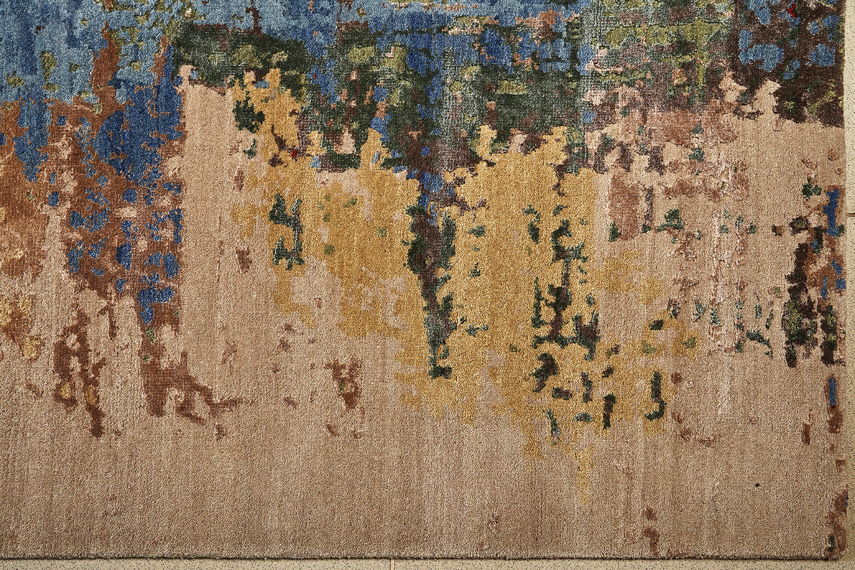 Дизайн ковров напоминает современные полотна художников-абстракционистов и производит столь же яркое и незабываемое впечатление в интерьере. Живописный эффект и необычная фактура зависят от выбора материала: натуральной шерсти, шёлка и от их сочетаний друг с другом. Ковры ткутся вручную в лучших мастерских Индии и Пакистана.