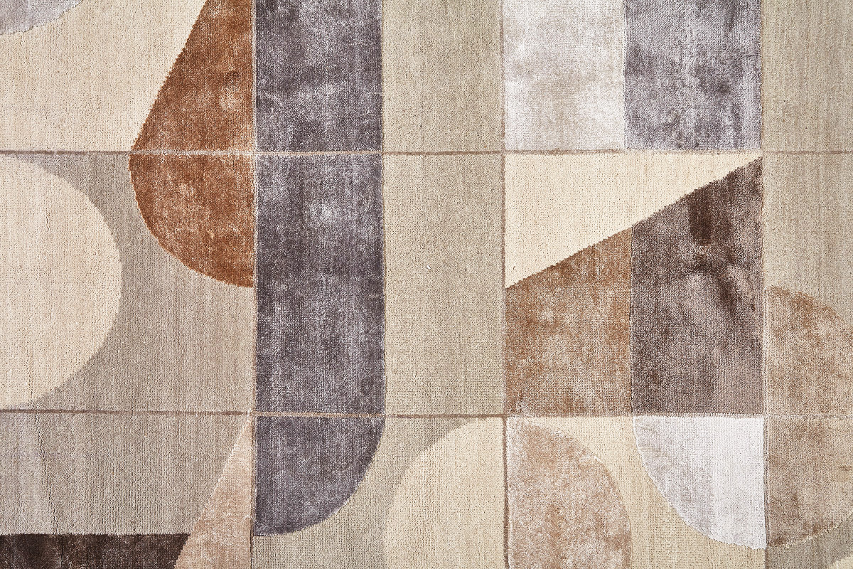 Крупные рисунки в виде линий и фигур на фактурной поверхности ковра превращаются в выразительные композиции. Они акцентируют на себе внимание и добавляют динамики в современный интерьер. Комбинации разных фигур и повторяющийся орнамент задают ритмическую основу пространству, привносят в него оригинальные оптические иллюзии.