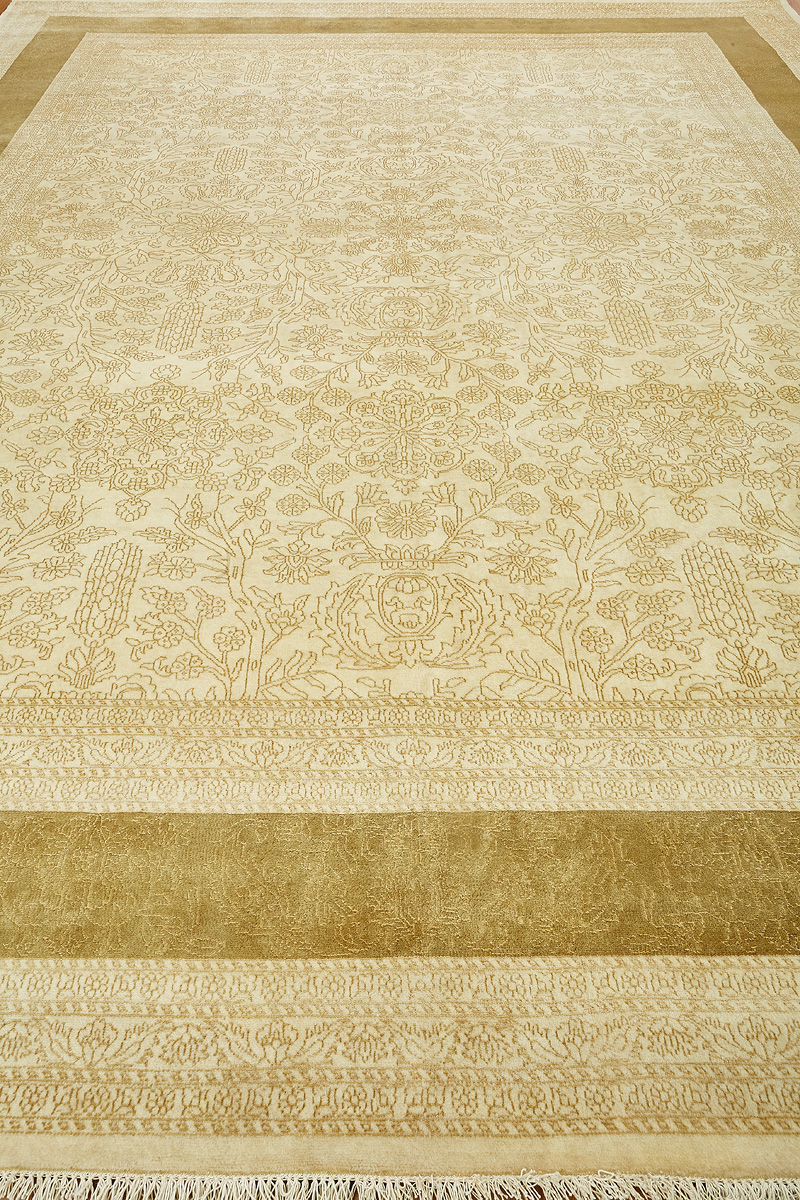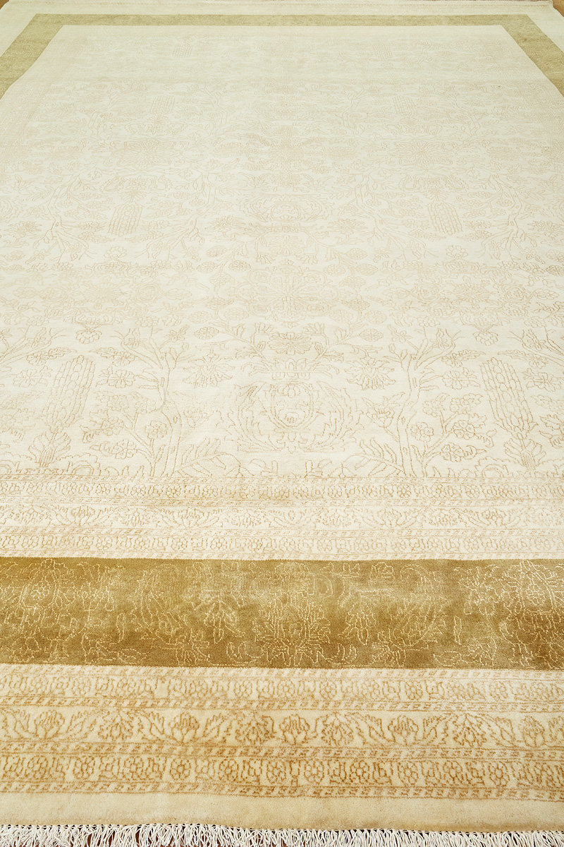 Каждый ковер в этой коллекции соткан вручную из шерсти и арт шёлка опытными индийскими мастерами.