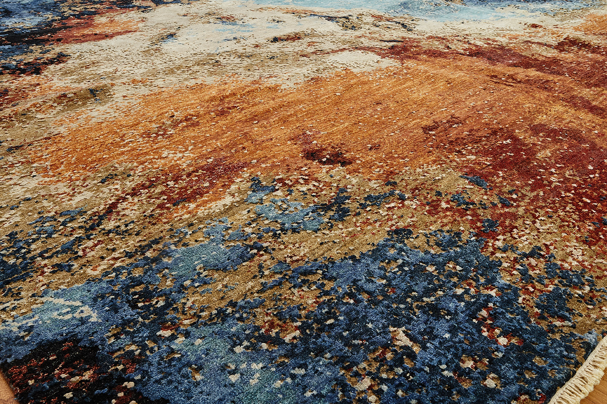 Дизайн ковров напоминает современные полотна художников-абстракционистов и производит столь же яркое и незабываемое впечатление в интерьере. Живописный эффект и необычная фактура зависят от выбора материала: натуральной шерсти, шёлка и от их сочетаний друг с другом. Ковры ткутся вручную в лучших мастерских Индии и Пакистана.