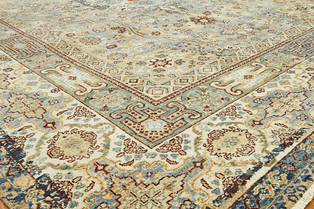 Родина этих ковров Индия и Пакистан. Чтобы создать такое произведение искусства у мастеров уходит от одного года до двух лет. Плотность ковров, в зависимости от размера, составляет от 150 000 до 400 000 узлов на квадратный метр.