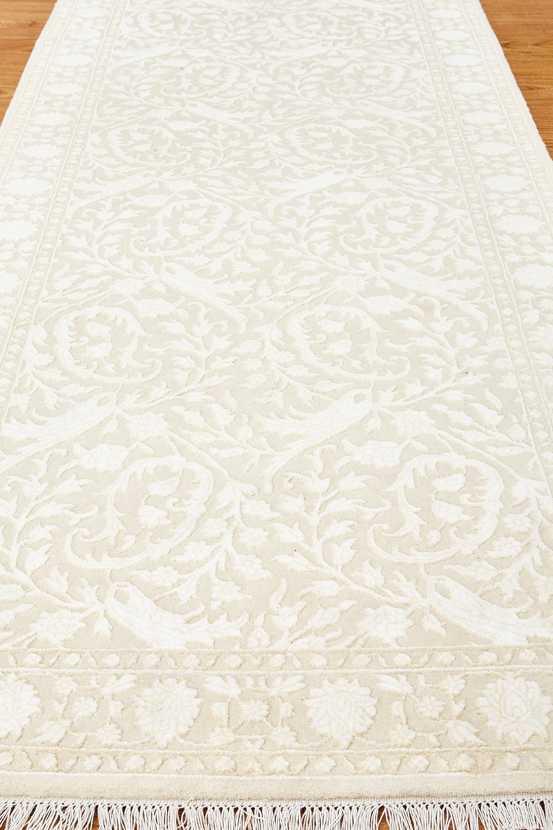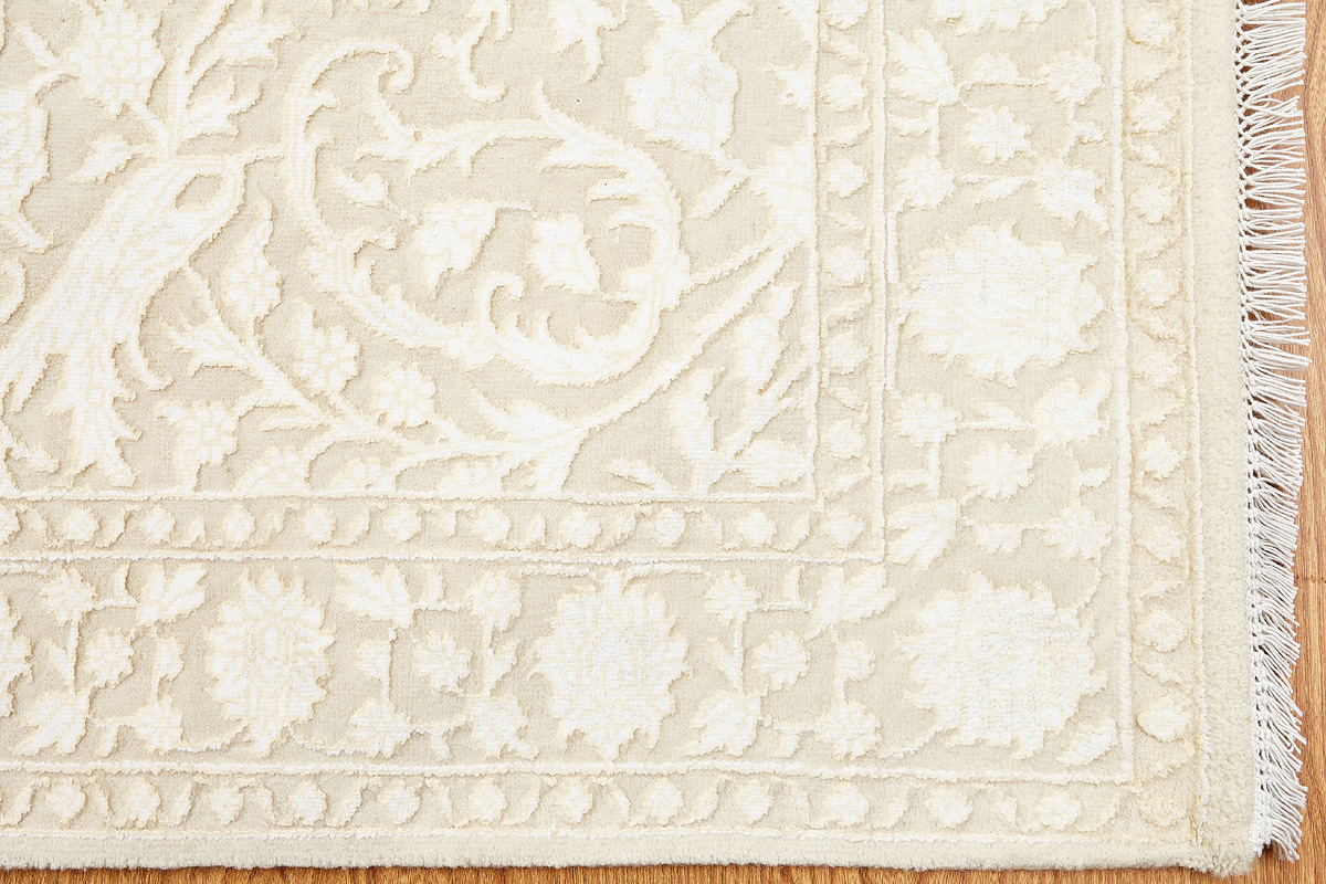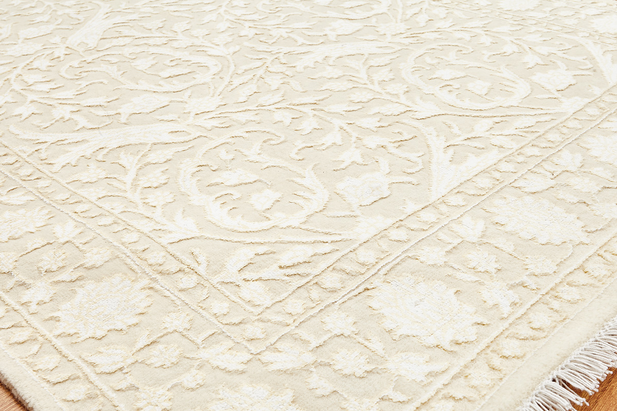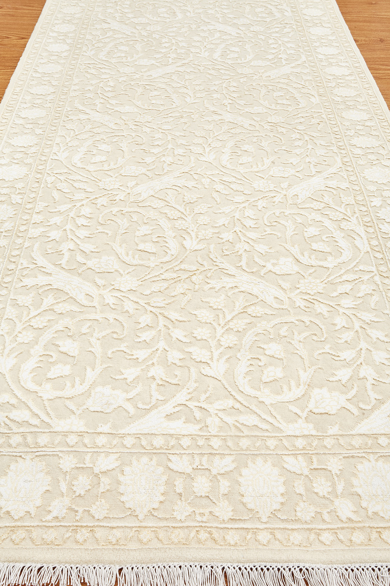 Каждый ковер в этой коллекции соткан вручную из шерсти и арт шёлка опытными индийскими мастерами.