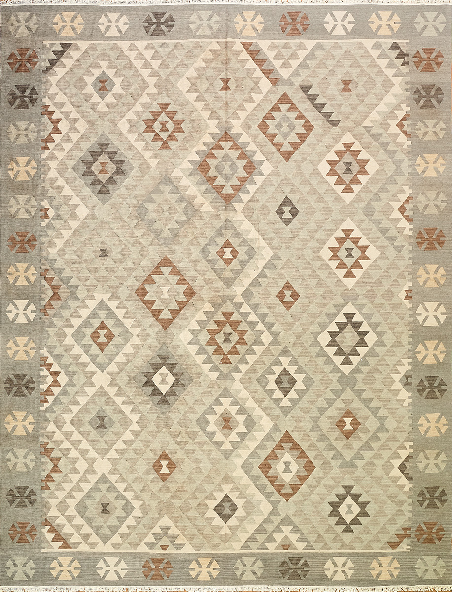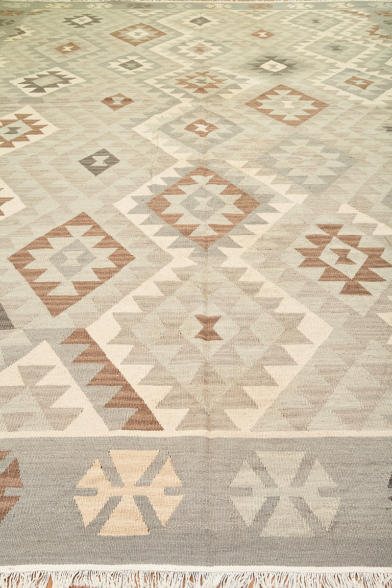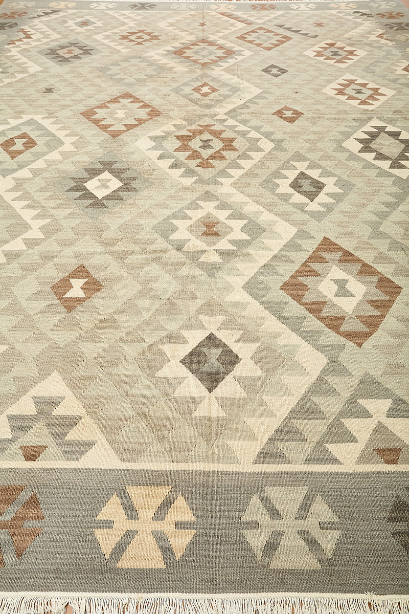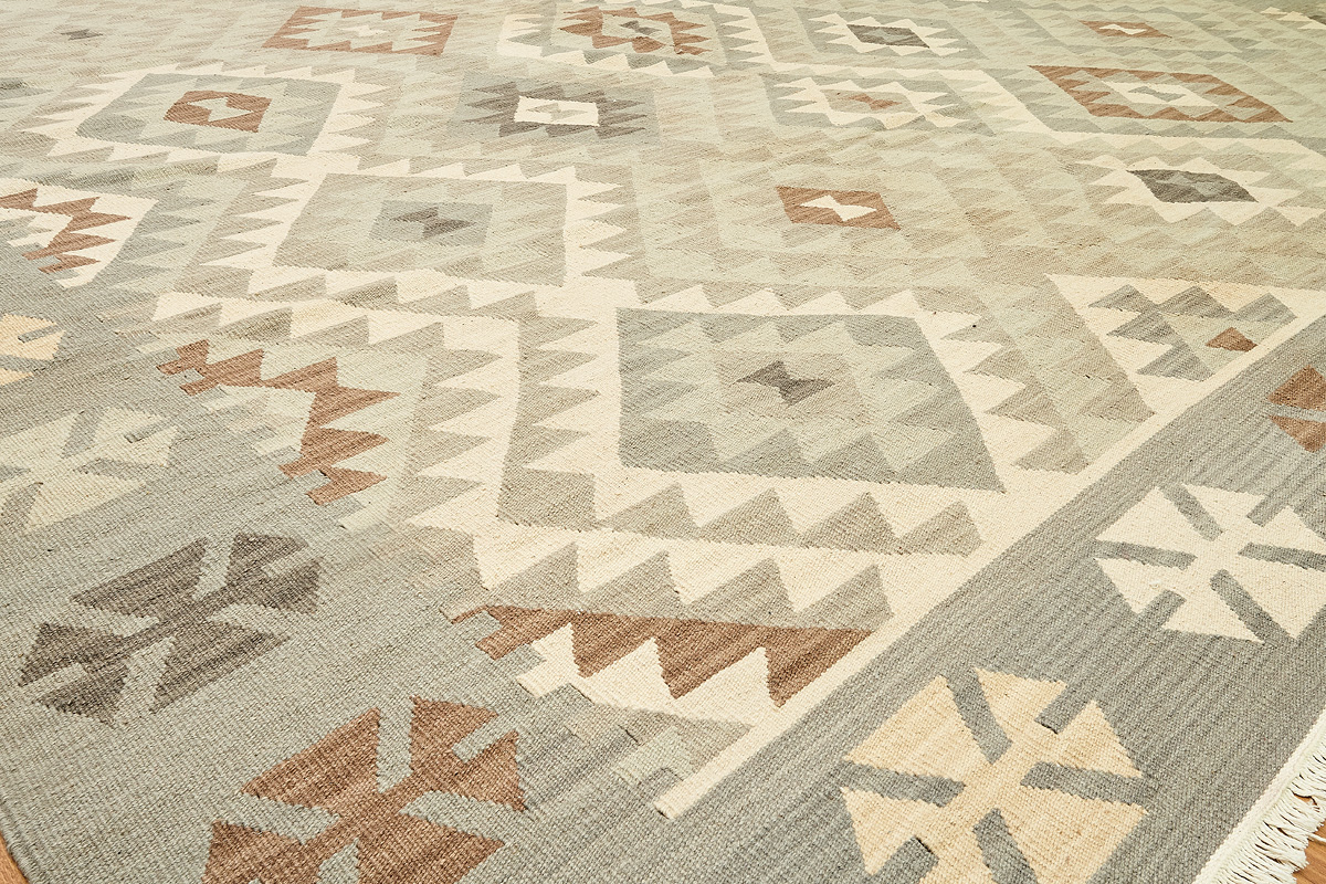 Узор ковров из коллекции Килим создаётся взаимодействием нитей утока и нитей основы, благодаря чему получается геометрический узор.