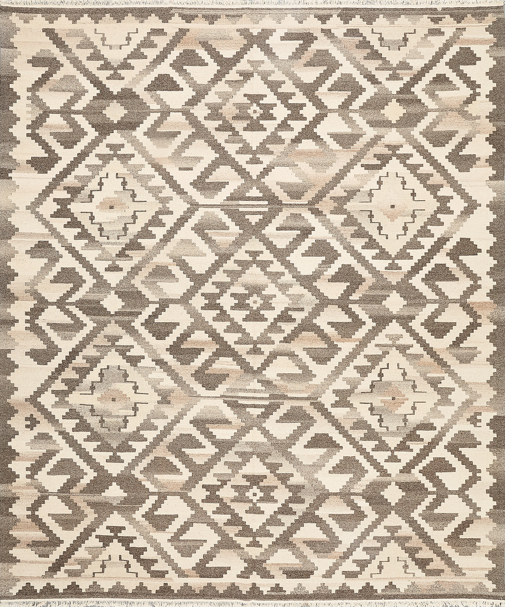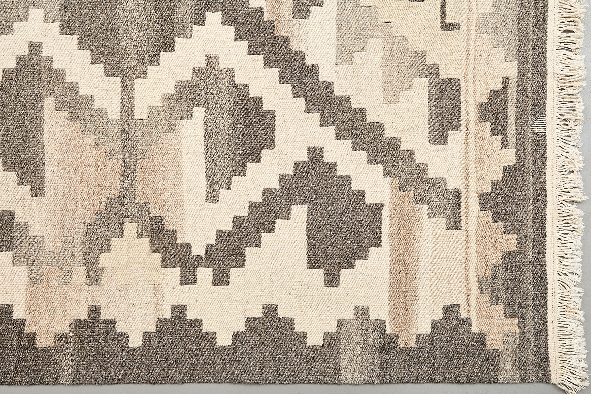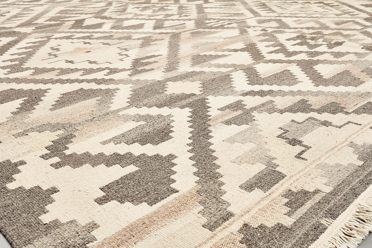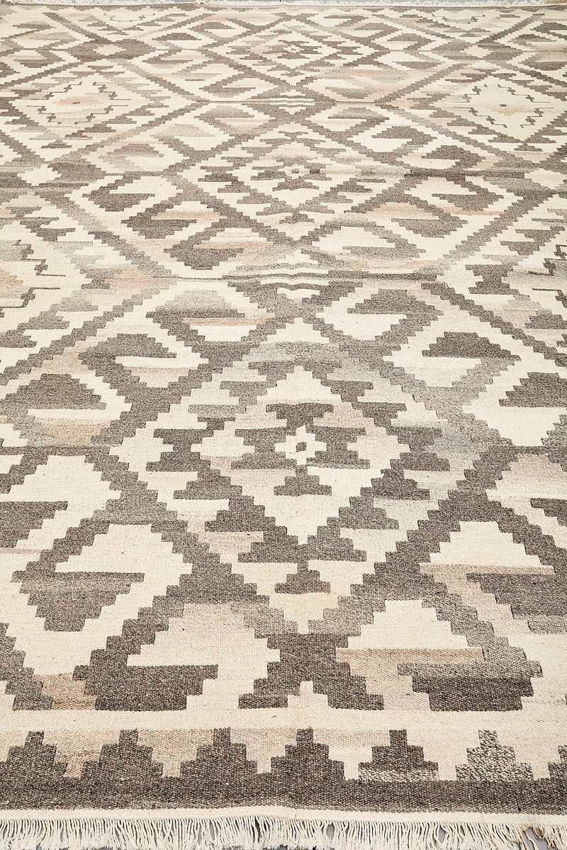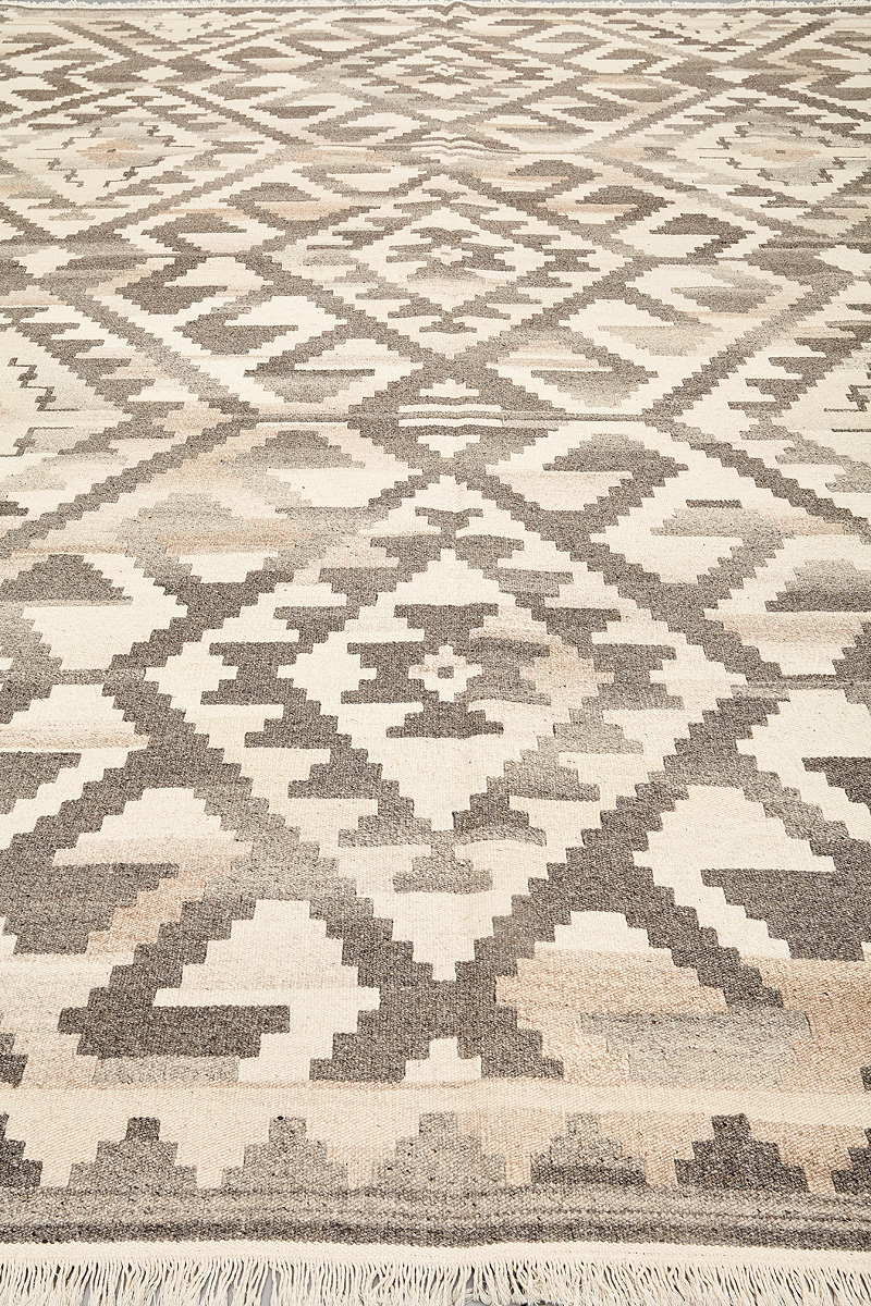 Узор ковров из коллекции Килим создаётся взаимодействием нитей утока и нитей основы, благодаря чему получается геометрический узор.