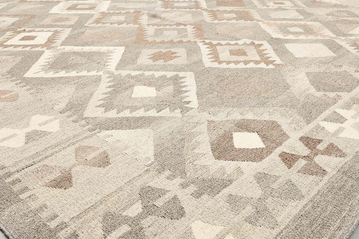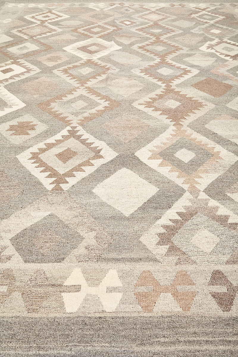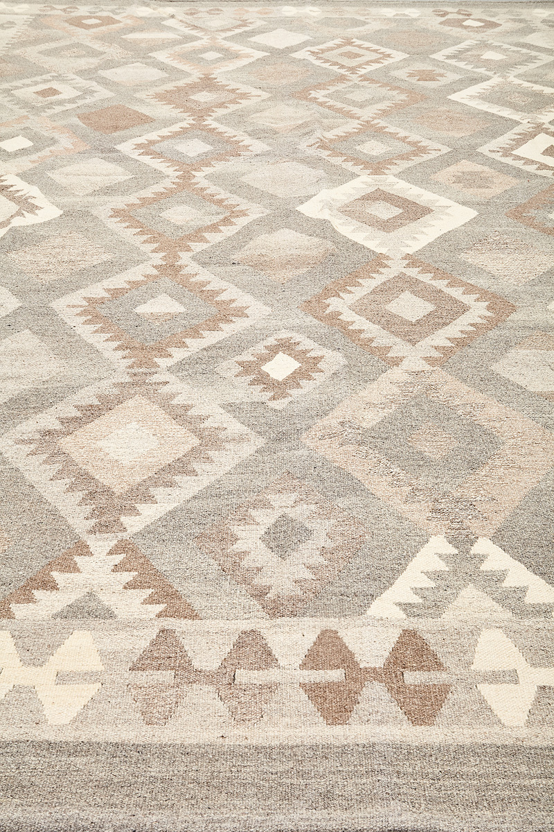 Узор ковров из коллекции Килим создаётся взаимодействием нитей утока и нитей основы, благодаря чему получается геометрический узор.