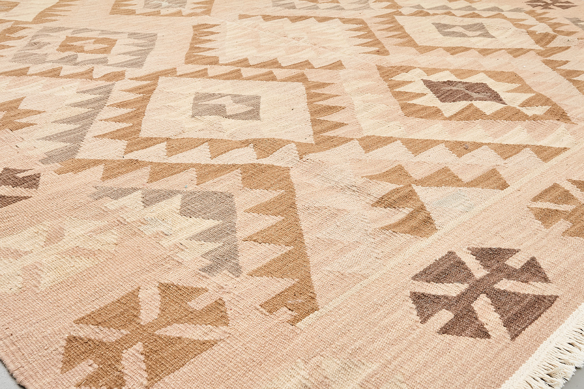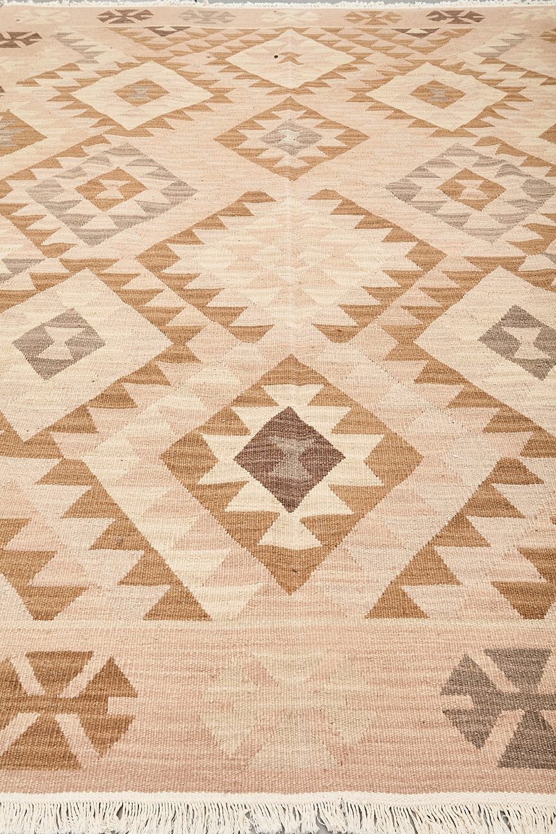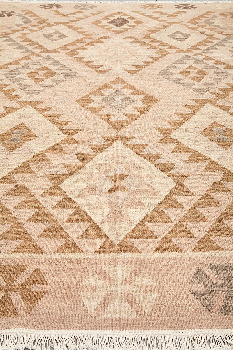 Узор ковров из коллекции Килим создаётся взаимодействием нитей утока и нитей основы, благодаря чему получается геометрический узор.