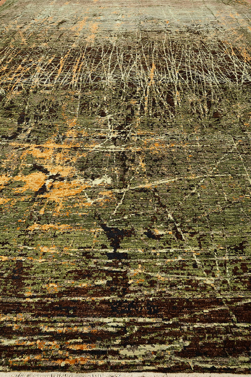 Дизайн ковров напоминает современные полотна художников-абстракционистов и производит столь же яркое и незабываемое впечатление в интерьере. Живописный эффект и необычная фактура зависят от выбора материала: натуральной шерсти, шёлка и от их сочетаний друг с другом. Ковры ткутся вручную в лучших мастерских Индии и Пакистана.
