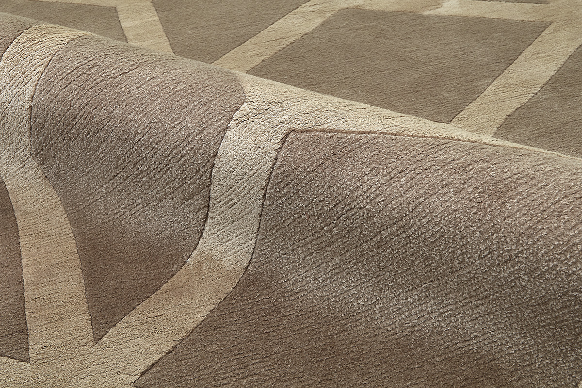 Крупные рисунки в виде линий и фигур на фактурной поверхности ковра превращаются в выразительные композиции. Они акцентируют на себе внимание и добавляют динамики в современный интерьер. Комбинации разных фигур и повторяющийся орнамент задают ритмическую основу пространству, привносят в него оригинальные оптические иллюзии.