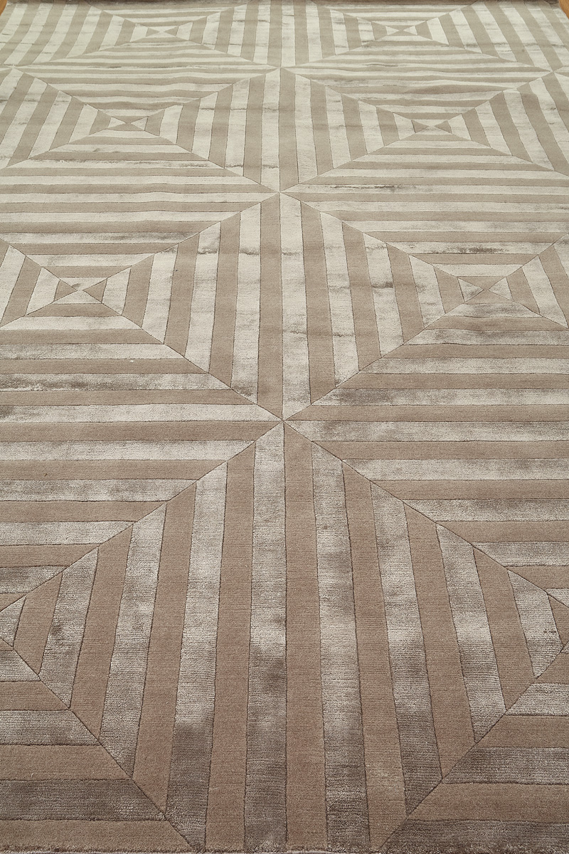 Крупные рисунки в виде линий и фигур на фактурной поверхности ковра превращаются в выразительные композиции. Они акцентируют на себе внимание и добавляют динамики в современный интерьер. Комбинации разных фигур и повторяющийся орнамент задают ритмическую основу пространству, привносят в него оригинальные оптические иллюзии.