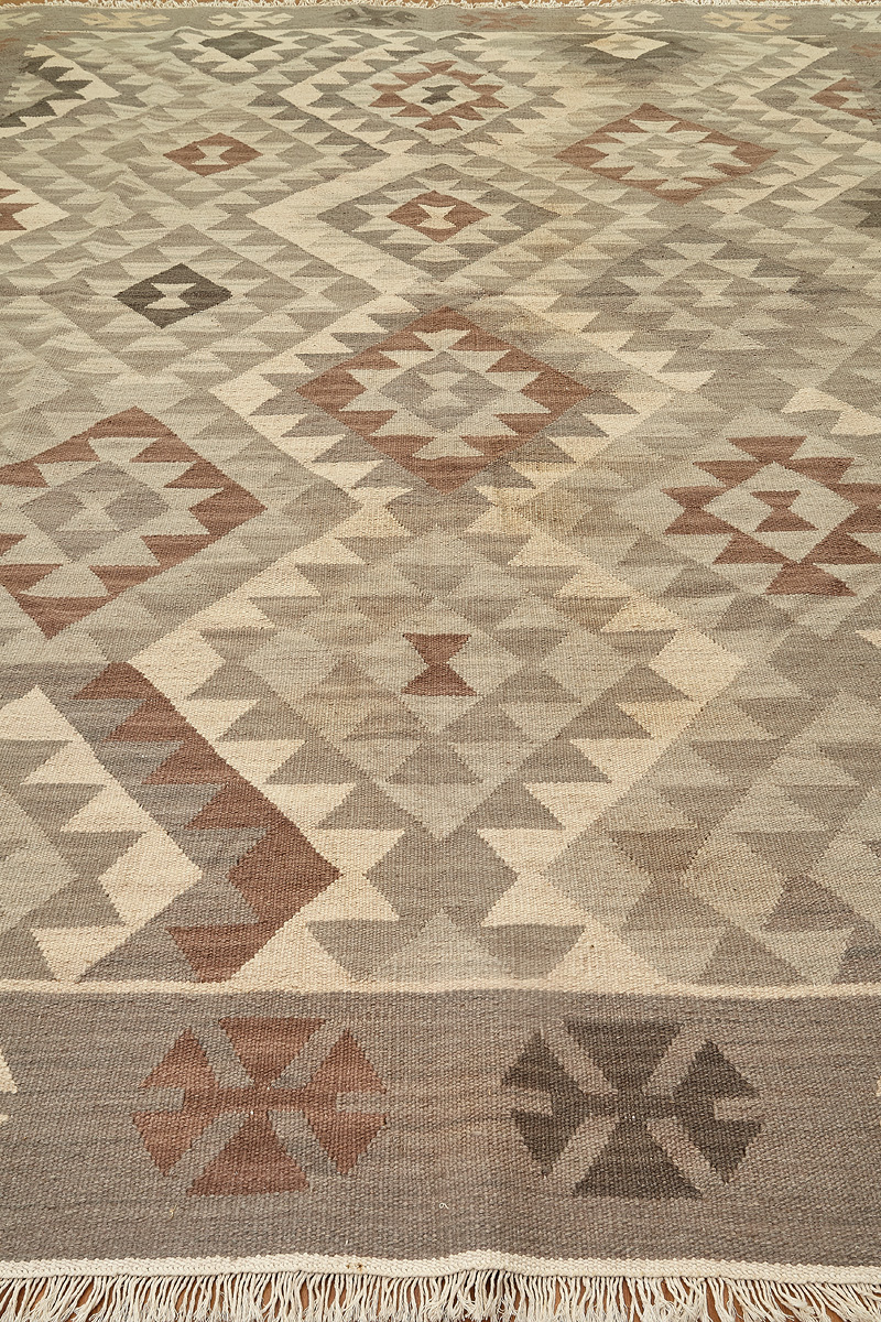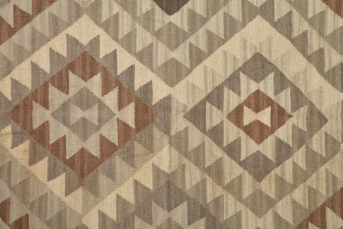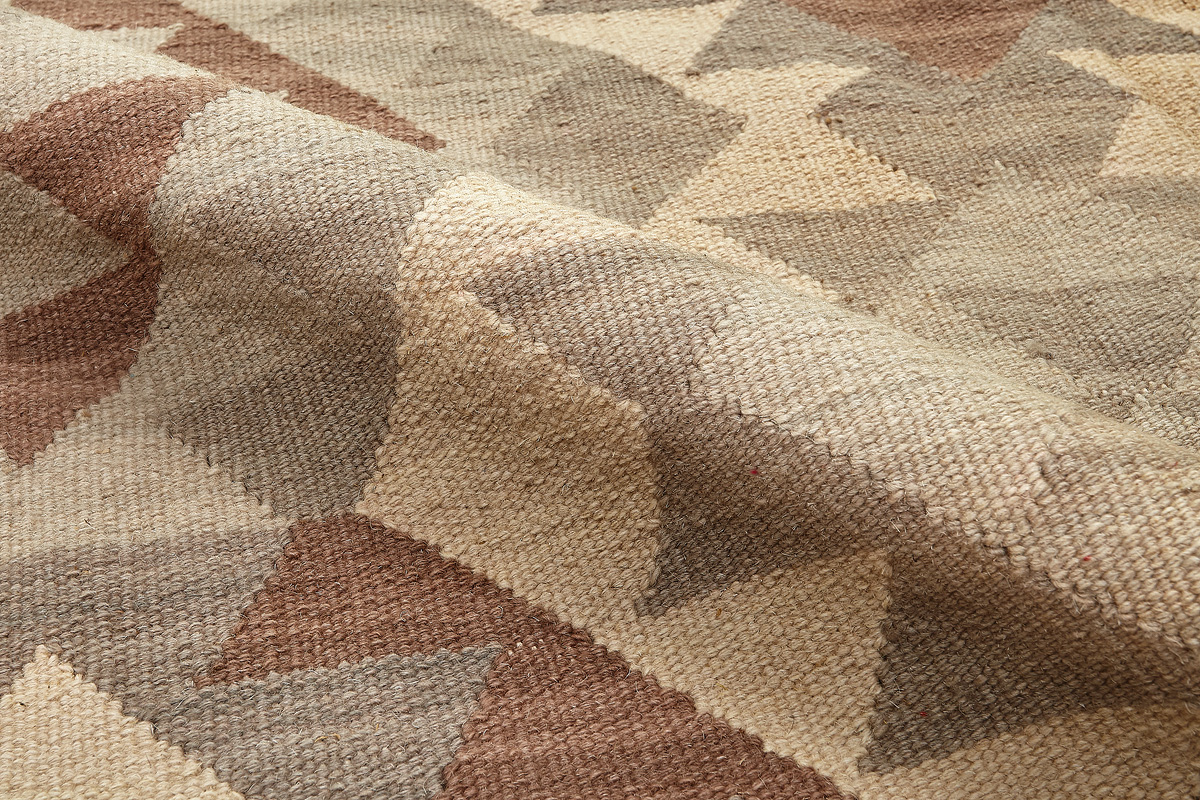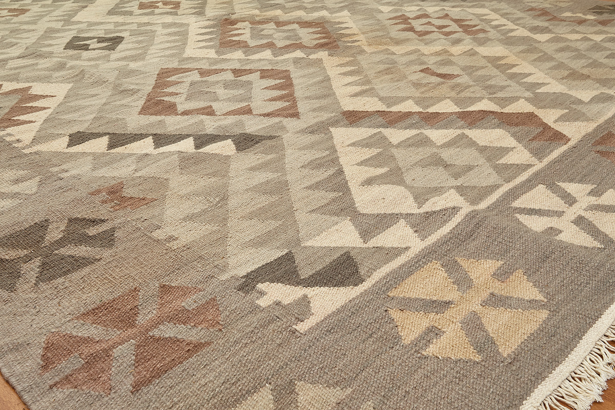Узор ковров из коллекции Килим создаётся взаимодействием нитей утока и нитей основы, благодаря чему получается геометрический узор.
