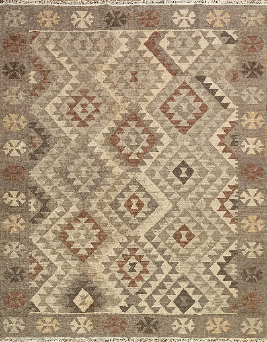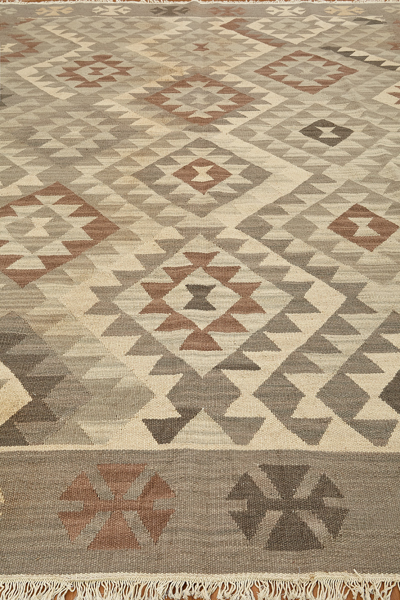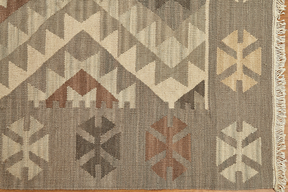 Узор ковров из коллекции Килим создаётся взаимодействием нитей утока и нитей основы, благодаря чему получается геометрический узор.