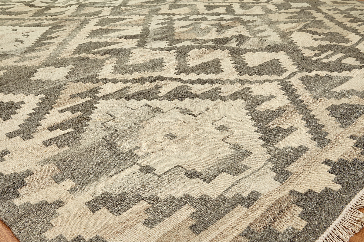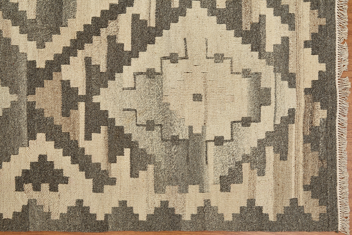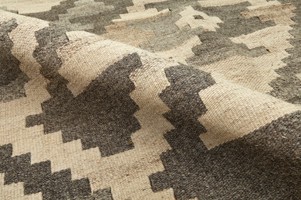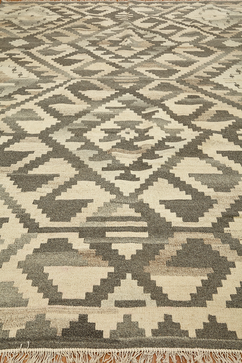 Узор ковров из коллекции Килим создаётся взаимодействием нитей утока и нитей основы, благодаря чему получается геометрический узор.
