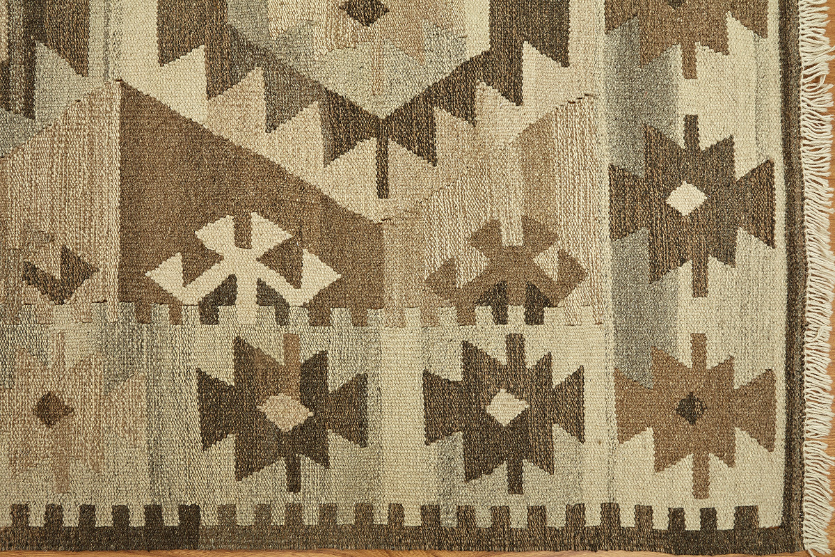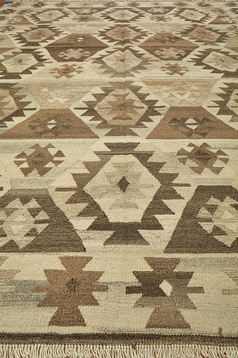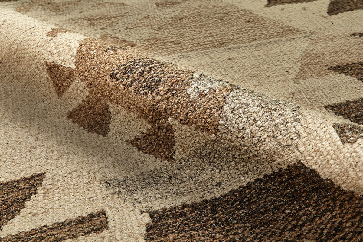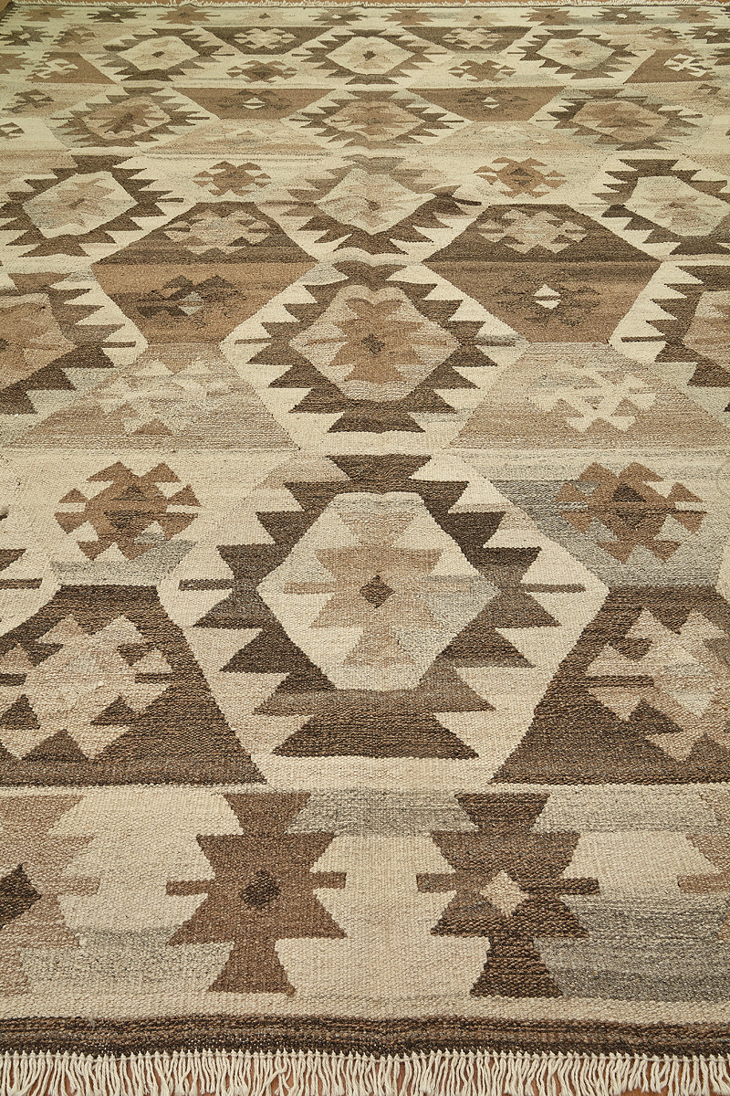 Узор ковров из коллекции Килим создаётся взаимодействием нитей утока и нитей основы, благодаря чему получается геометрический узор.