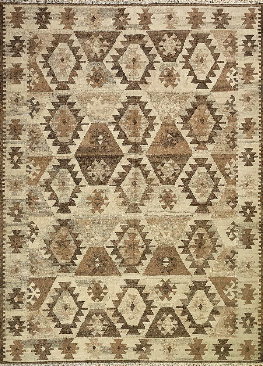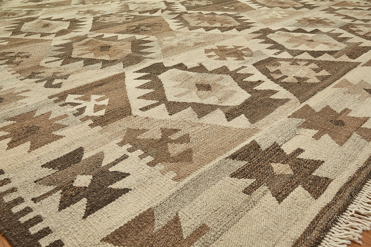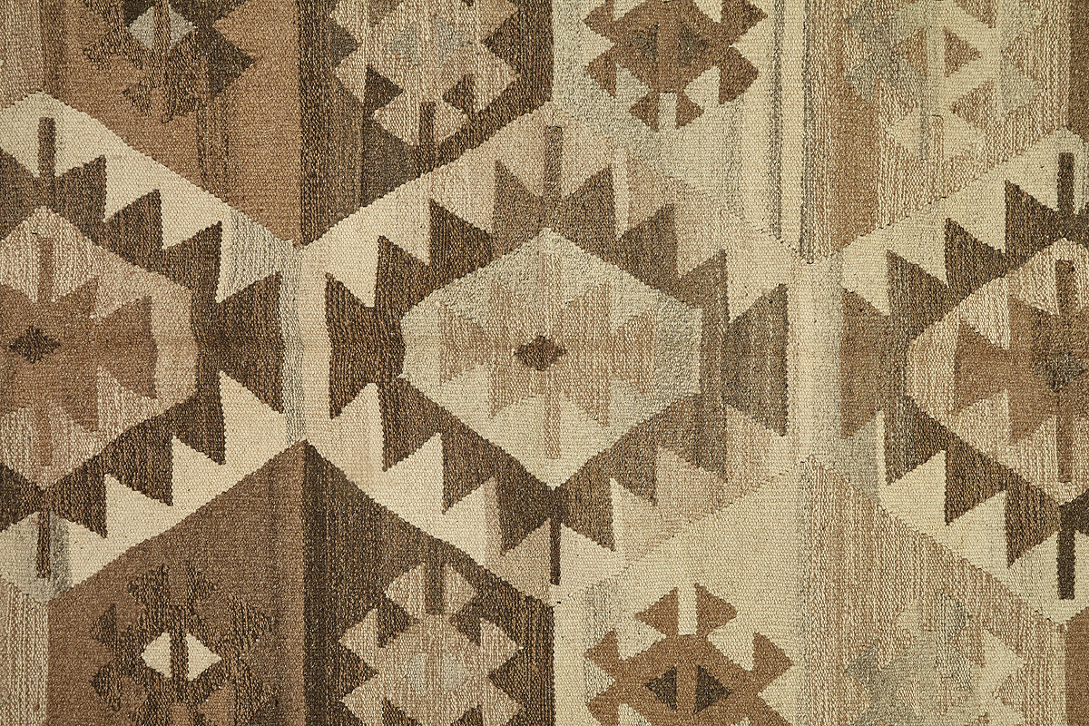 Узор ковров из коллекции Килим создаётся взаимодействием нитей утока и нитей основы, благодаря чему получается геометрический узор.