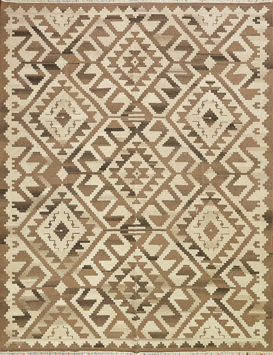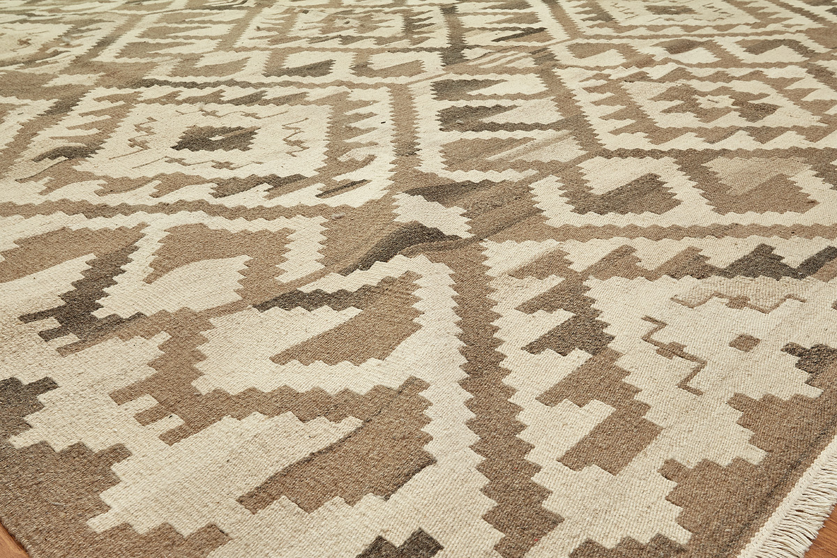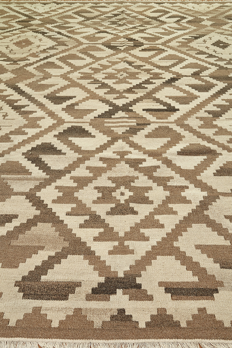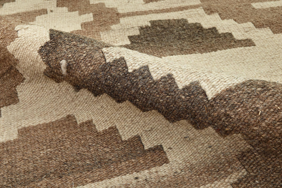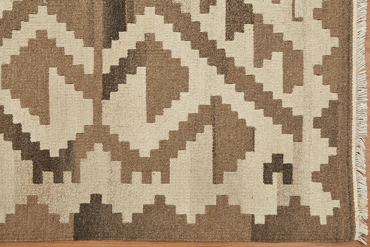 Узор ковров из коллекции Килим создаётся взаимодействием нитей утока и нитей основы, благодаря чему получается геометрический узор.