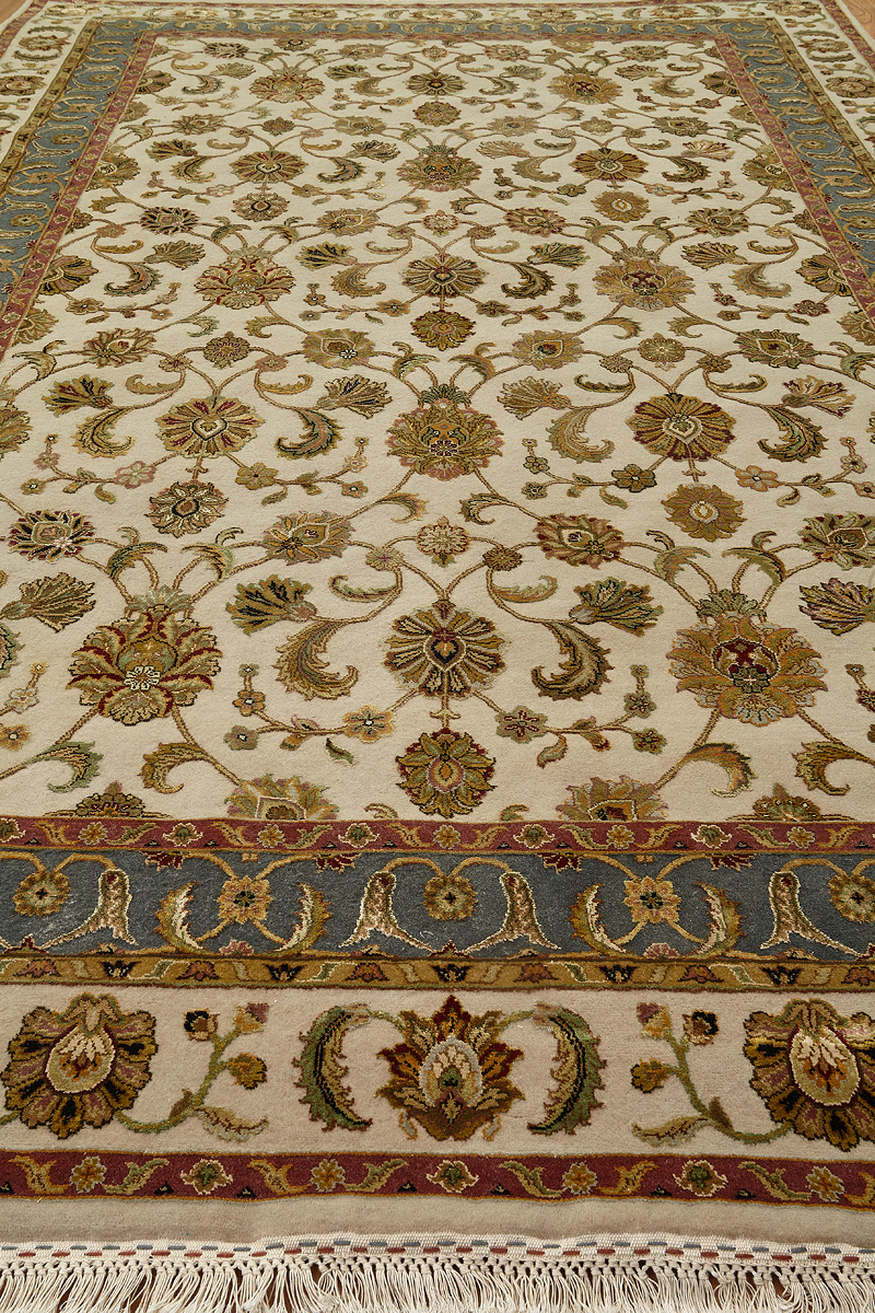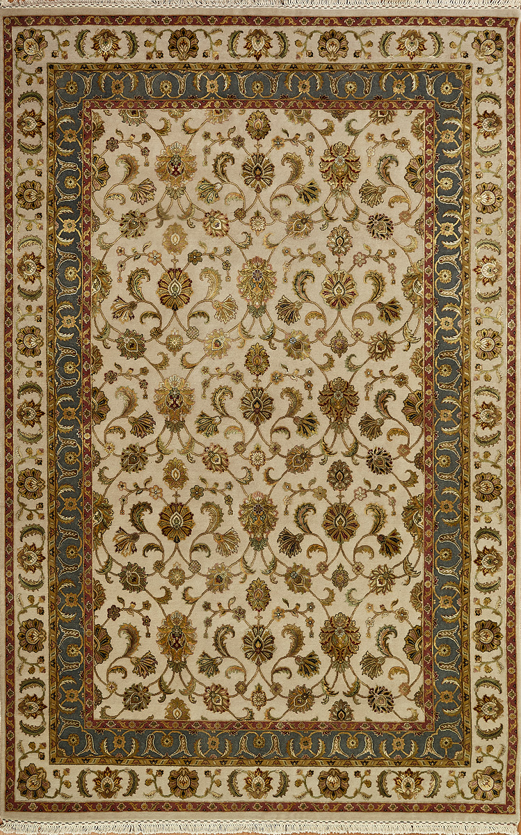Более пяти веков назад в городе Агра зародилась знаменитая индийская школа ковроткачества, прославившаяся не меньше, чем расположенный здесь же Тадж-Махал. Мощное персидское влияние, помноженное на местный колорит, привело к появлению оригинальных орнаментов с богатыми растительными узорами — причудливым цветам, ветвям и листьям, разбросанным по всему полю ковра.
