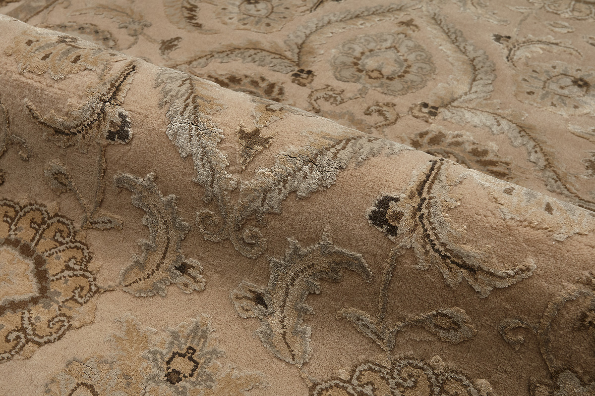 Каждый ковер в этой коллекции соткан вручную из шерсти и арт шёлка опытными индийскими мастерами.