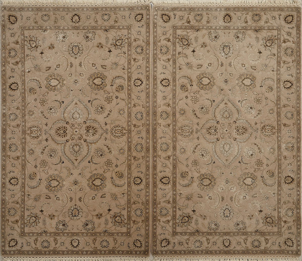 Более пяти веков назад в городе Агра зародилась знаменитая индийская школа ковроткачества, прославившаяся не меньше, чем расположенный здесь же Тадж-Махал. Мощное персидское влияние, помноженное на местный колорит, привело к появлению оригинальных орнаментов с богатыми растительными узорами — причудливым цветам, ветвям и листьям, разбросанным по всему полю ковра.
