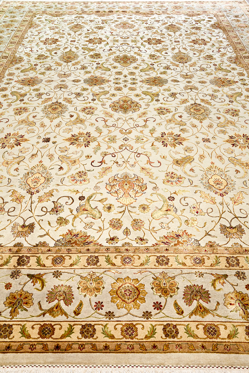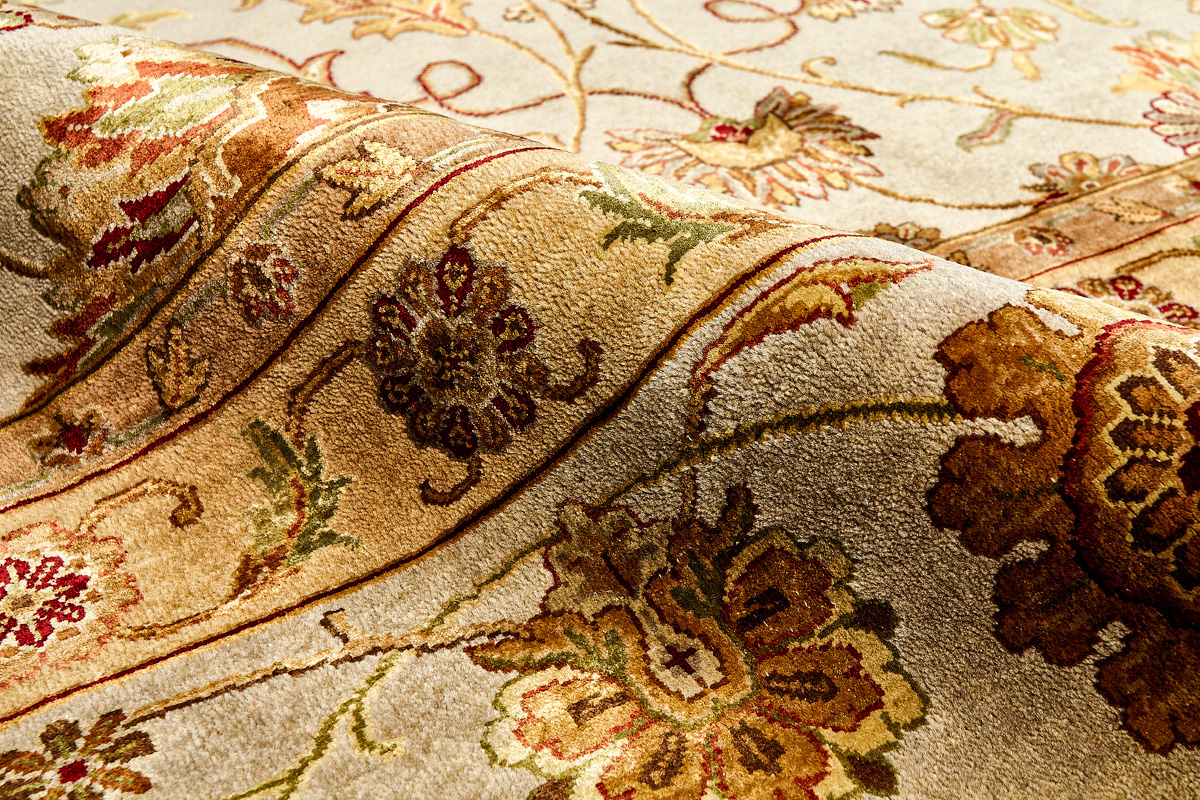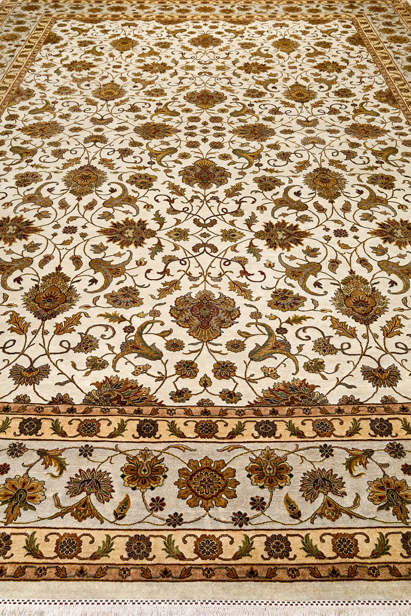 Более пяти веков назад в городе Агра зародилась знаменитая индийская школа ковроткачества, прославившаяся не меньше, чем расположенный здесь же Тадж-Махал. Мощное персидское влияние, помноженное на местный колорит, привело к появлению оригинальных орнаментов с богатыми растительными узорами — причудливым цветам, ветвям и листьям, разбросанным по всему полю ковра.