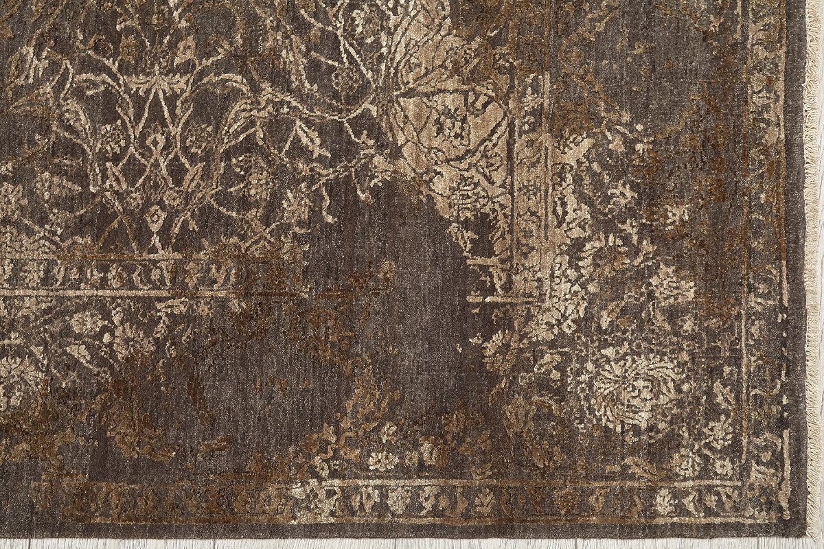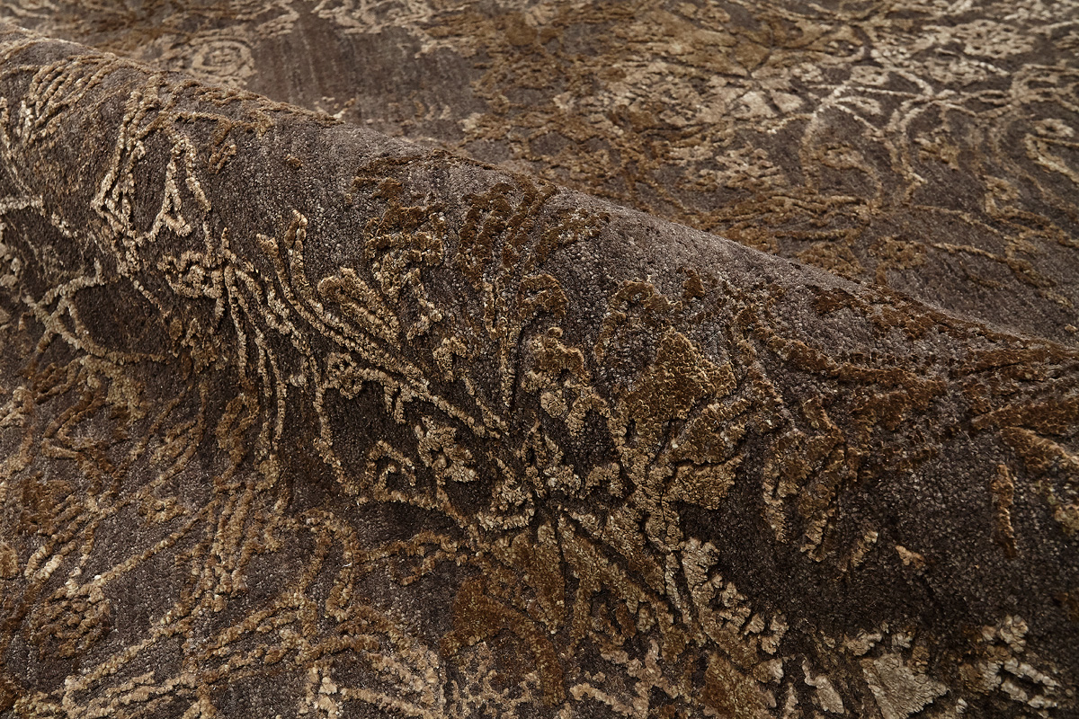 Время и природа — два главных стержня. Впечатление такое, что краски словно стёрлись, а если они и сохраняют яркость, то рисунок сохранился не весь, какие‑то фрагменты утрачены — такова типология этого столь актуального сегодня ковра ручной работы из коллекции illusion.