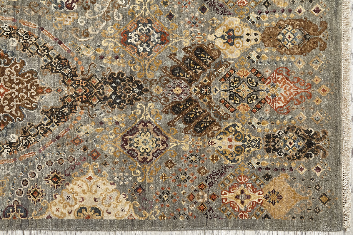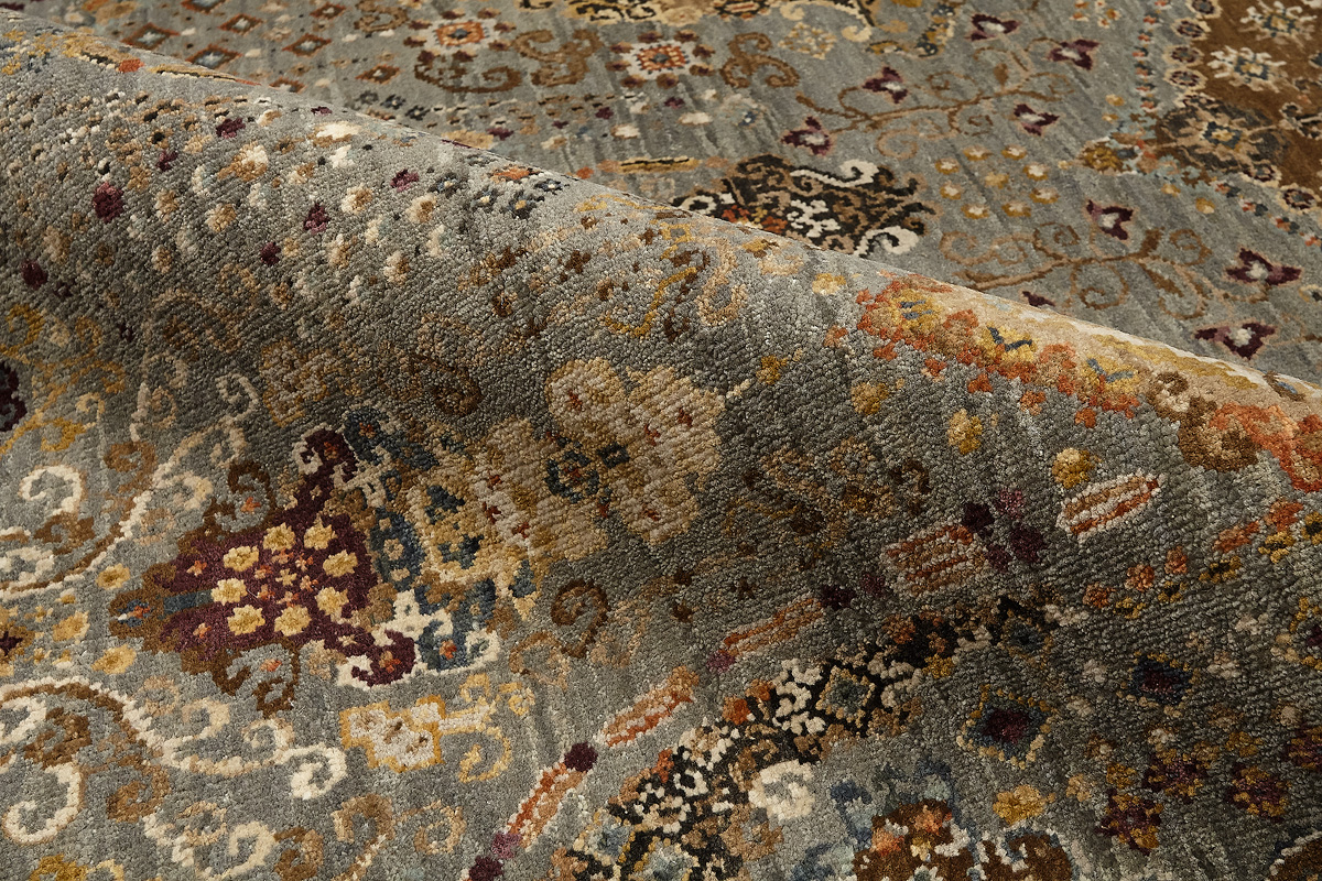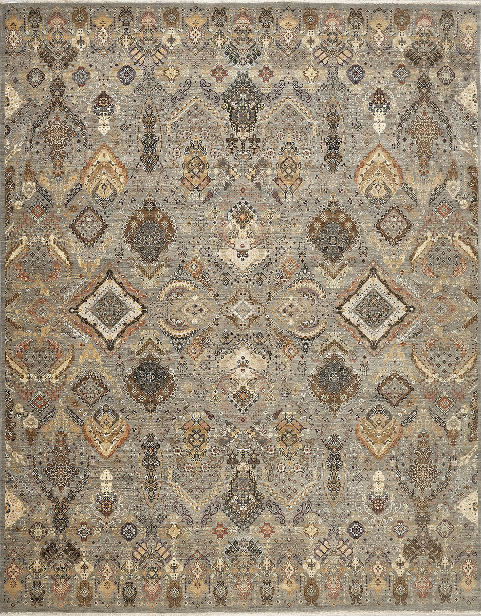 Время и природа — два главных стержня. Впечатление такое, что краски словно стёрлись, а если они и сохраняют яркость, то рисунок сохранился не весь, какие‑то фрагменты утрачены — такова типология этого столь актуального сегодня ковра ручной работы из коллекции Pearl.