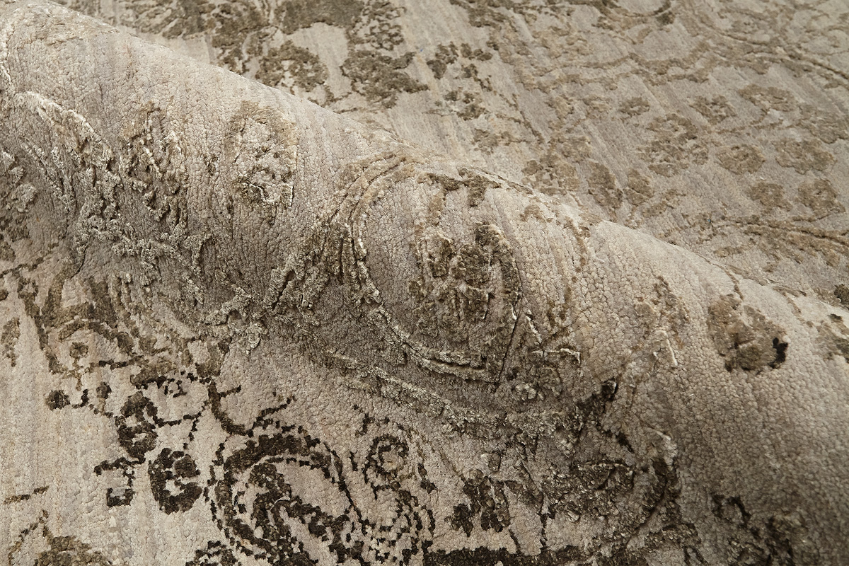 Такой эффект достигается за счет специальной техники плетения, а также обработки, которой подвергают ковры, чтобы они выглядели как антикварные — то есть дорого, элегантно и модно.