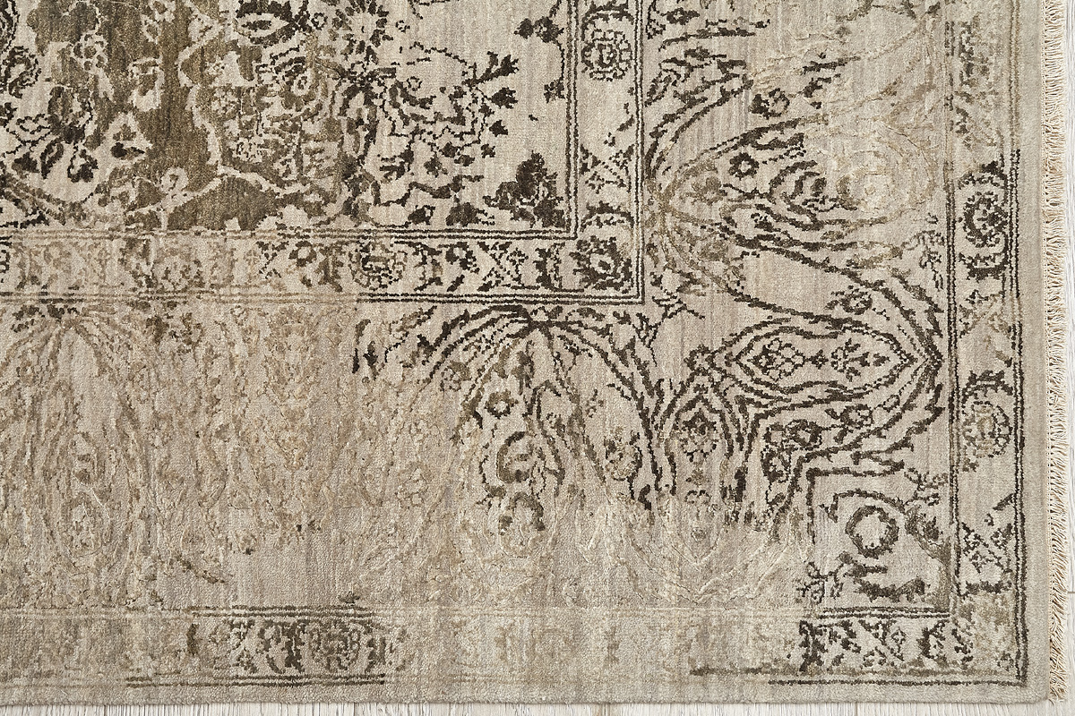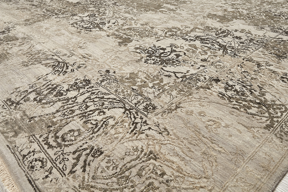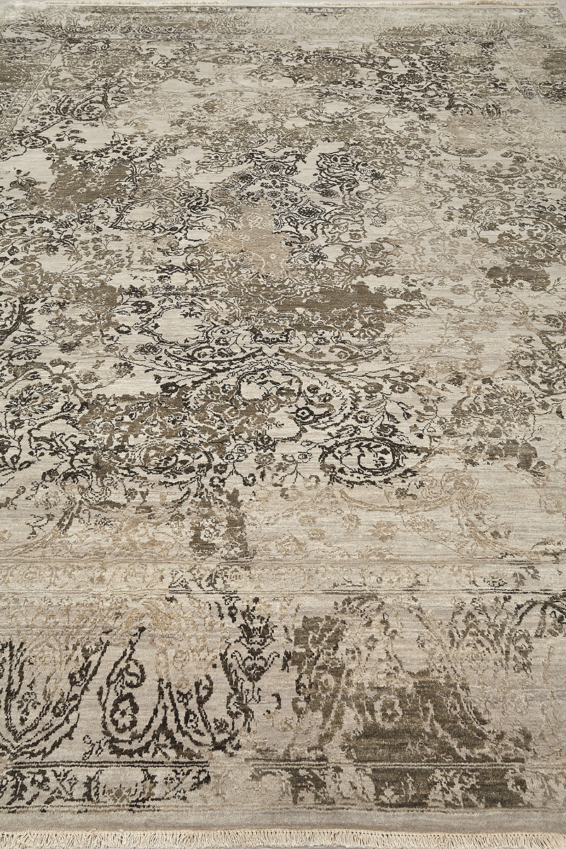 Время и природа — два главных стержня. Впечатление такое, что краски словно стёрлись, а если они и сохраняют яркость, то рисунок сохранился не весь, какие‑то фрагменты утрачены — такова типология этого столь актуального сегодня ковра ручной работы из коллекции illusion.