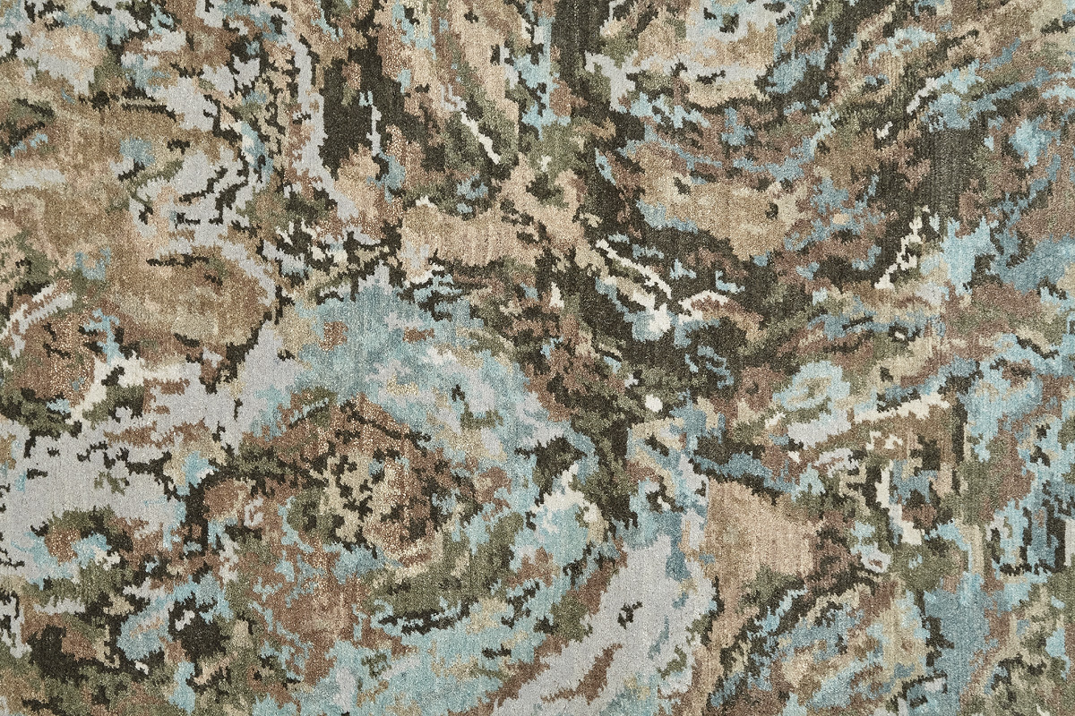 Дизайн ковров напоминает современные полотна художников-абстракционистов и производит столь же яркое и незабываемое впечатление в интерьере. Живописный эффект и необычная фактура зависят от выбора материала: натуральной шерсти, шёлка и от их сочетаний друг с другом. Ковры ткутся вручную в лучших мастерских Индии и Пакистана.